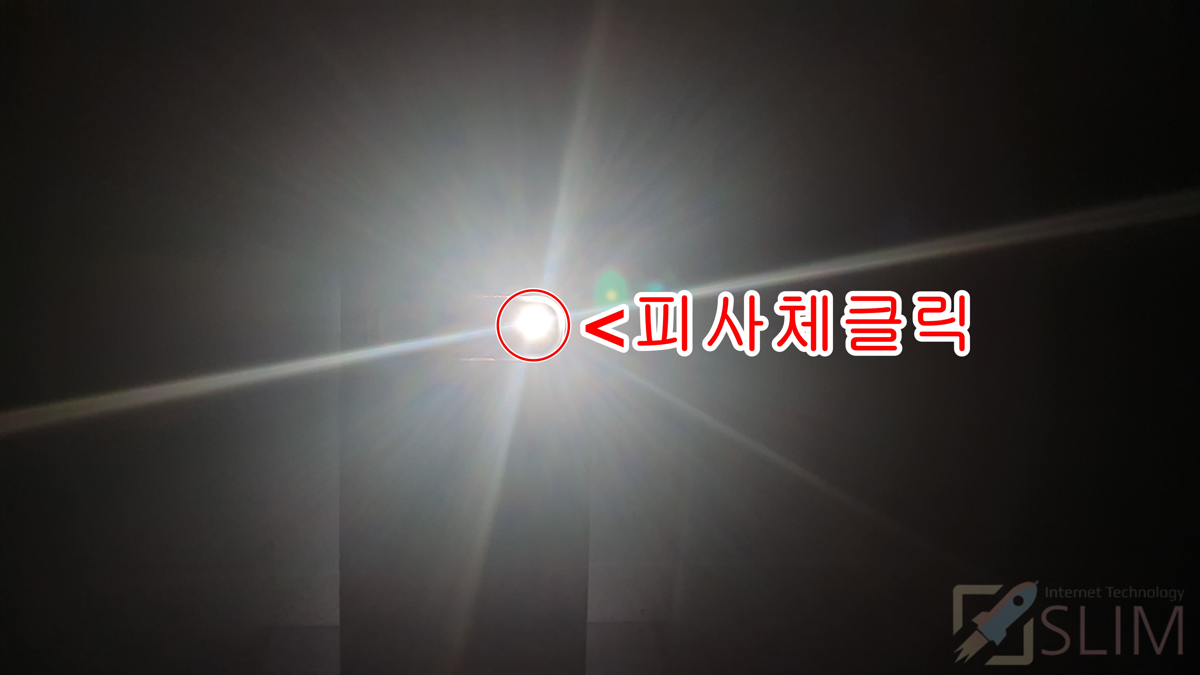 그래서 내가 찍고 싶은 피사체로 초점을 맞추기 위해서 갤럭시 카메라 앱을 실행한 후 원하는 피사체를 손가락으로 꾹 누르게 되면 해당 부분의 물체로 초점이 맞춰지게 됩니다. 현재 화면상 빛번짐을 일으키고 있는 발광체를 클릭하게 되면 빛번짐이 완전히 해결되게 되는 것이죠.