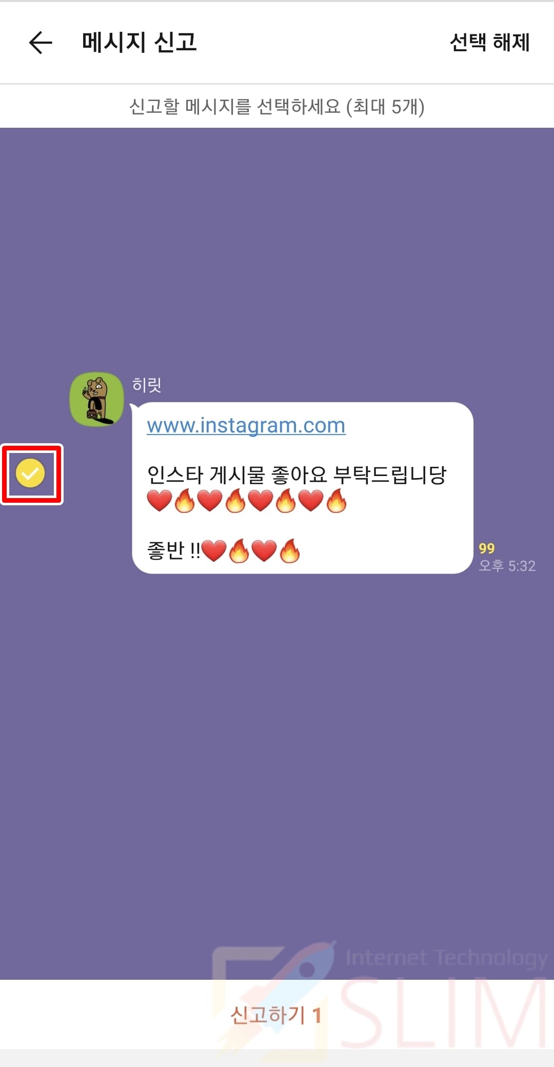 4. 신고할 메시지를 최대 5개까지 체크합니다.