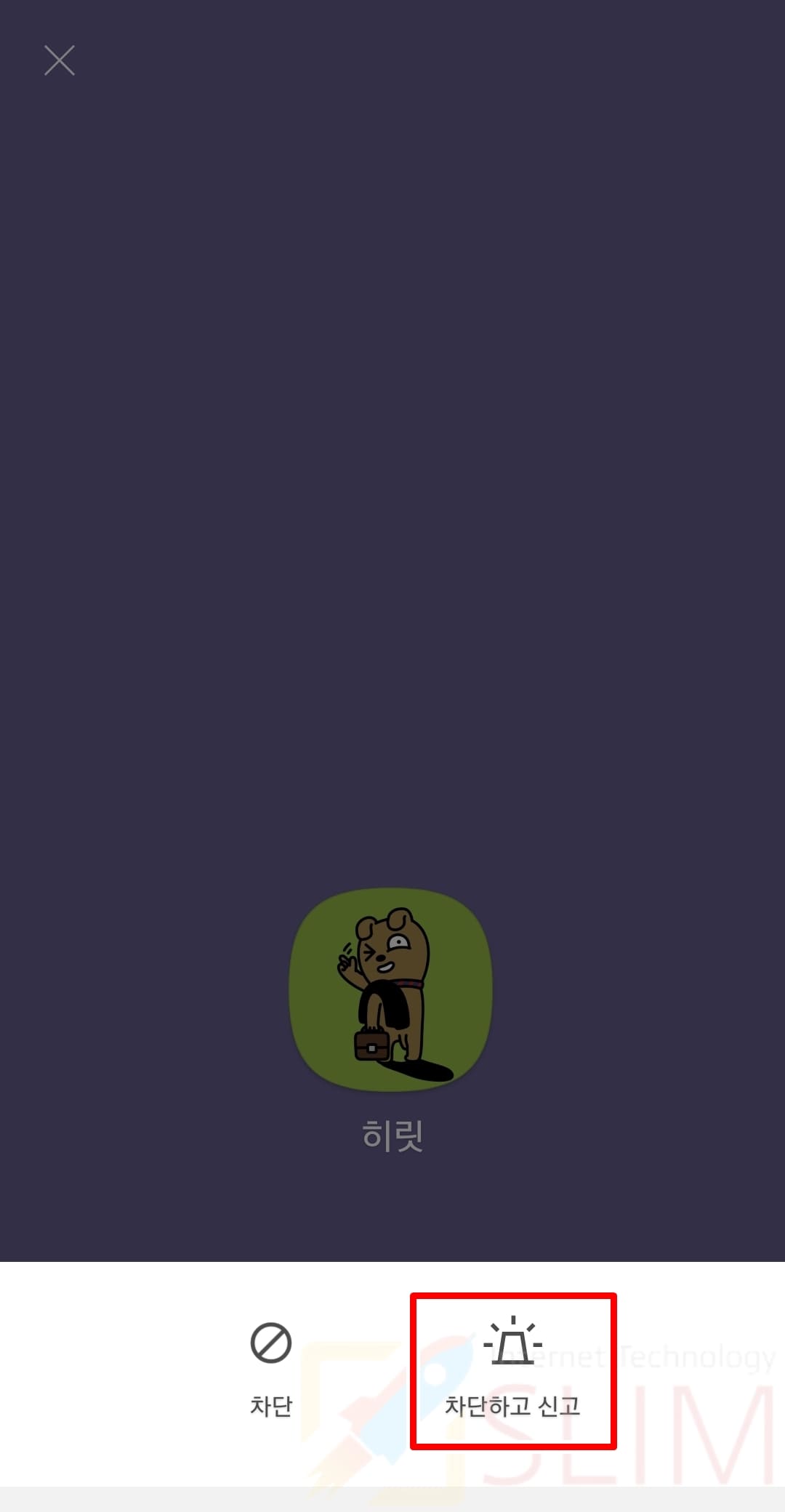 3. 차단하고 신고를 선택합니다.