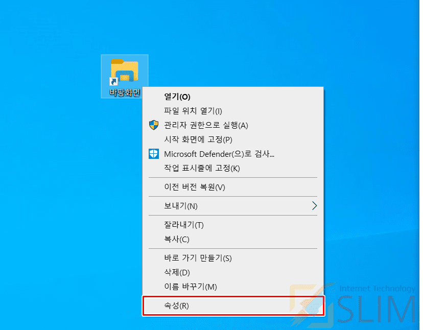 1. 바탕화면 바로가기 아이콘에 마우스 우클릭합니다.