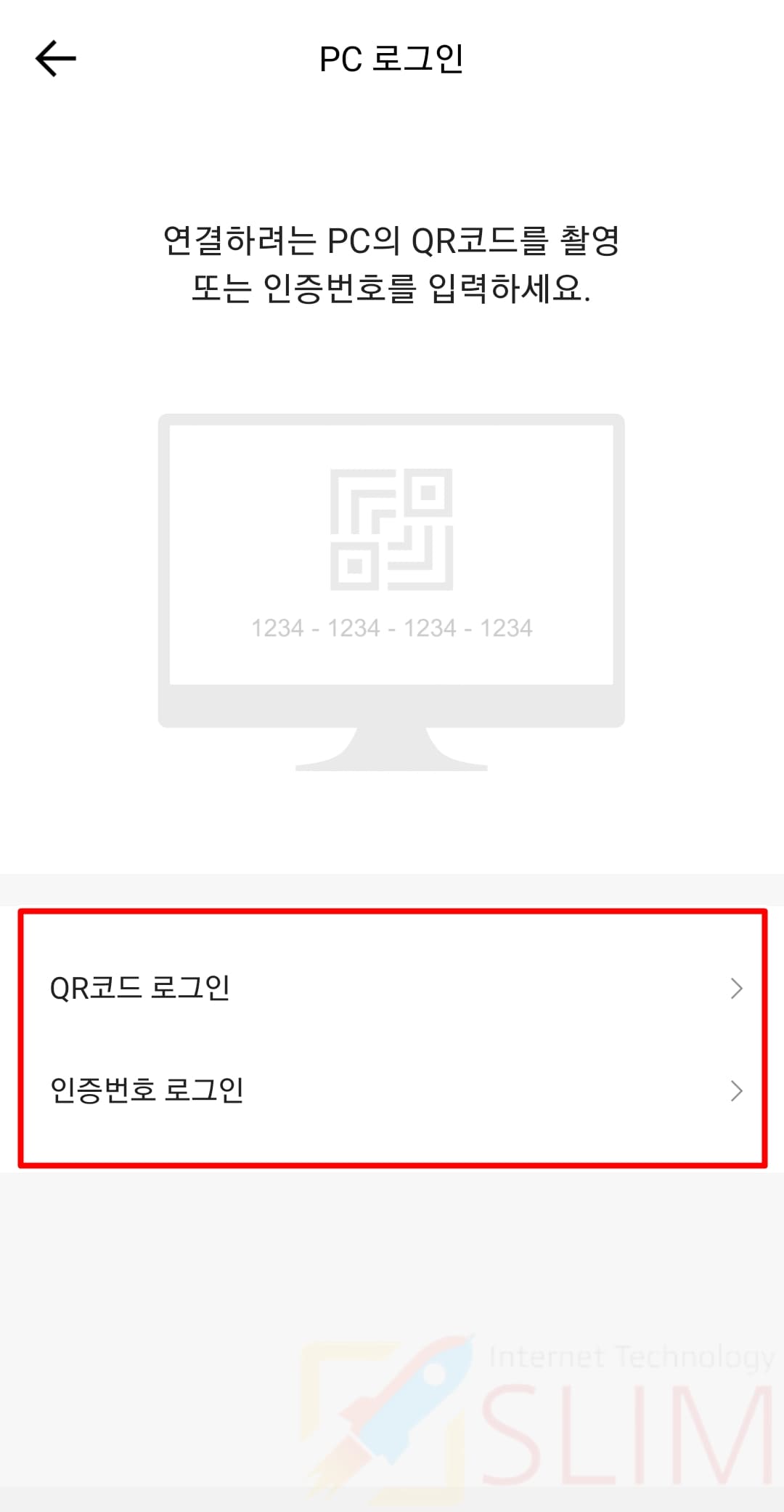 22. QR코드 로그인 또는 인증번호 로그인을 선택합니다.
