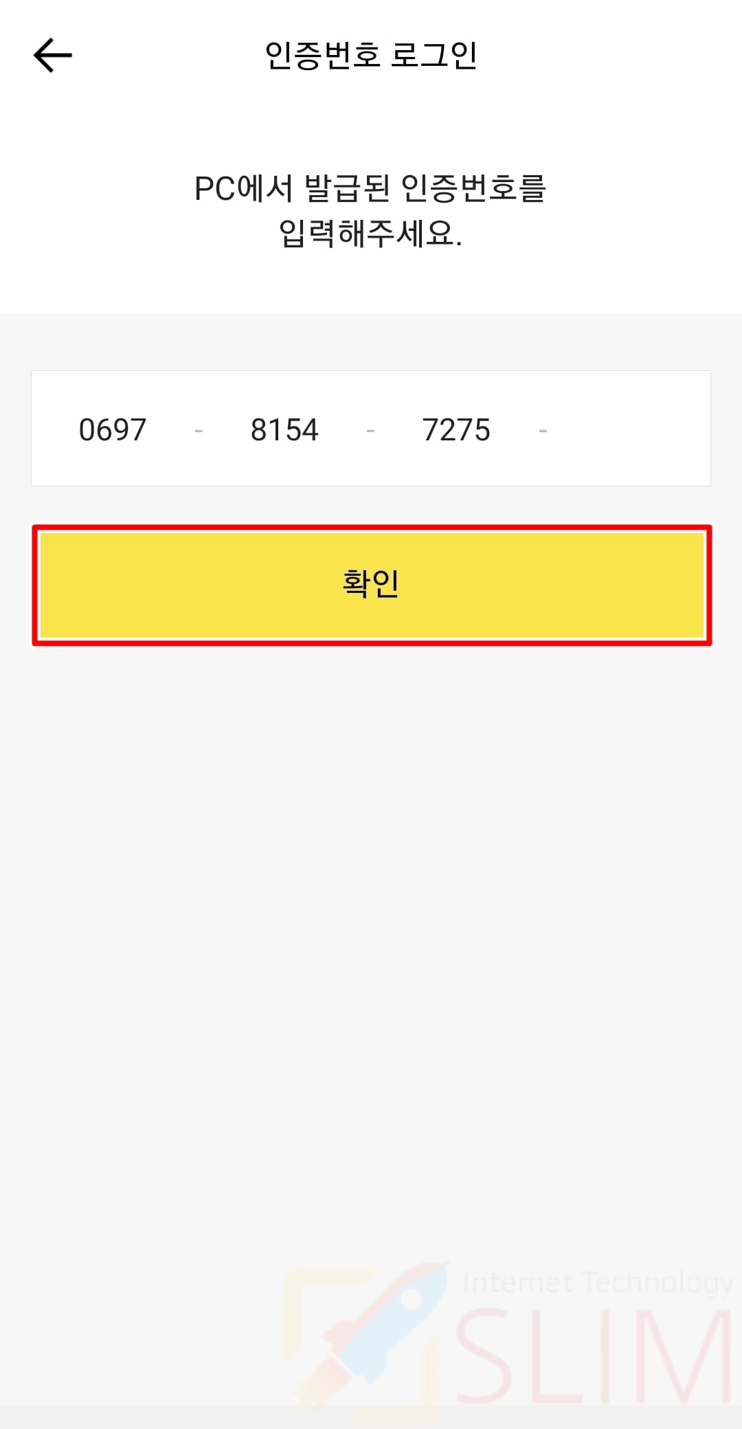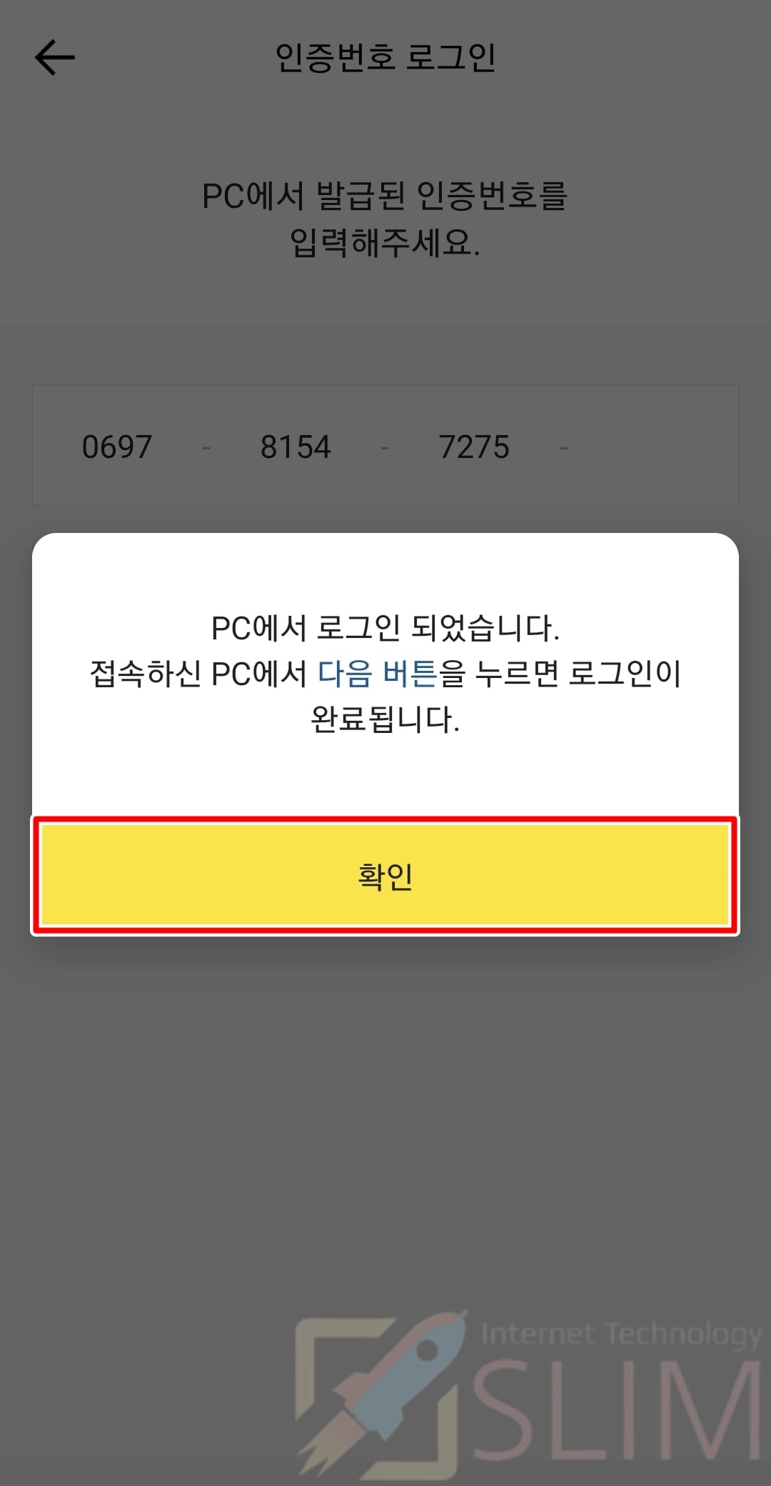 23. 인증번호 입력 후 확인을 누릅니다.