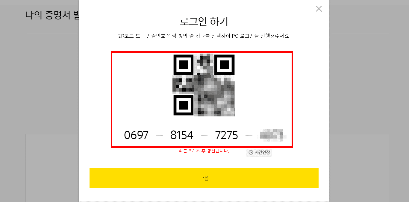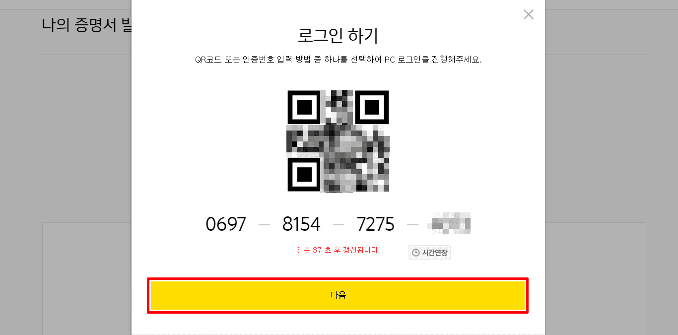 18. 로그인을 위해서 QR코드 또는 인증번호를 확인합니다.