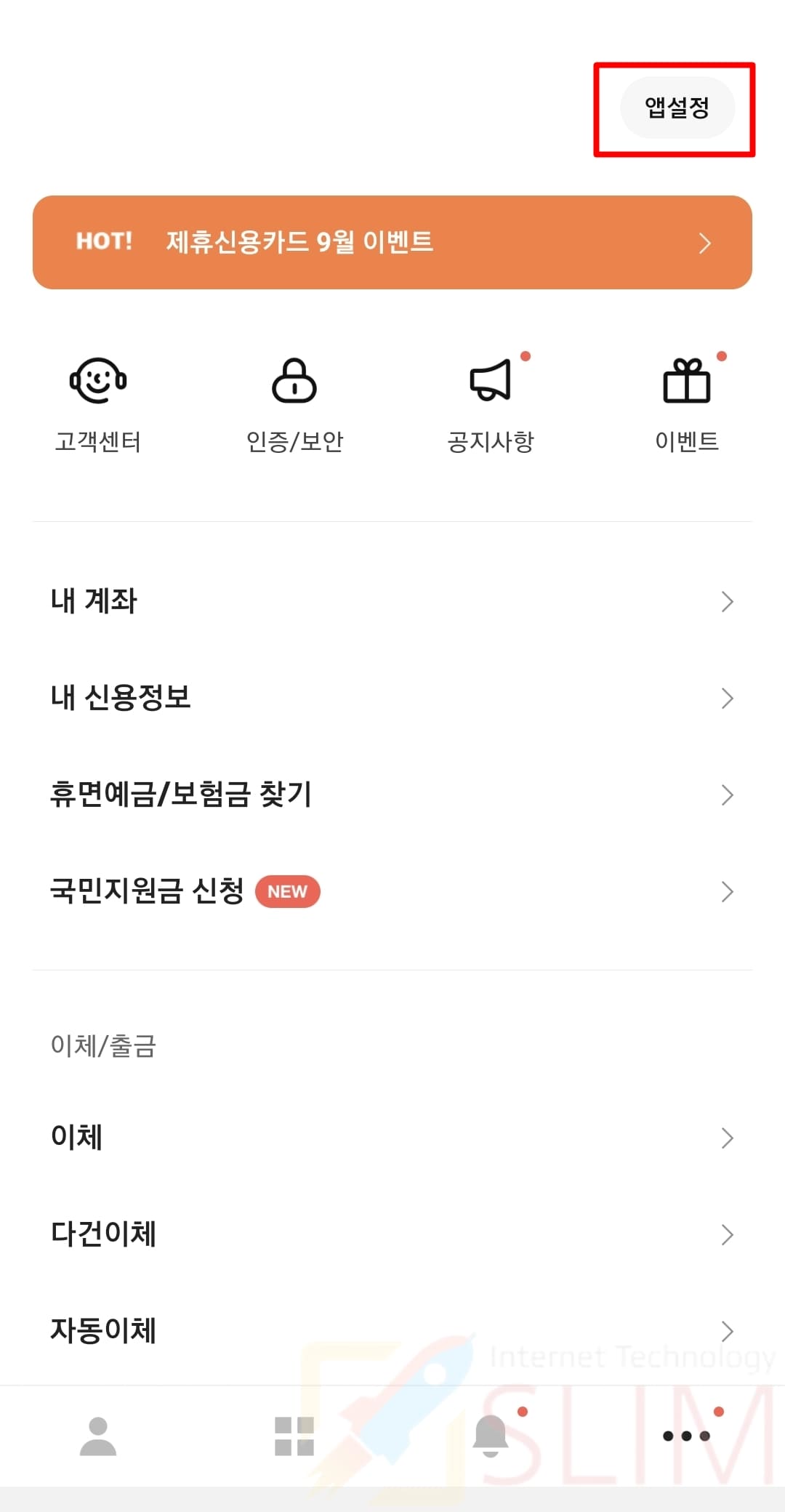 19. 스마트폰에서 카카오뱅크 앱을 실행하고 더보기 버튼을 클릭합니다.