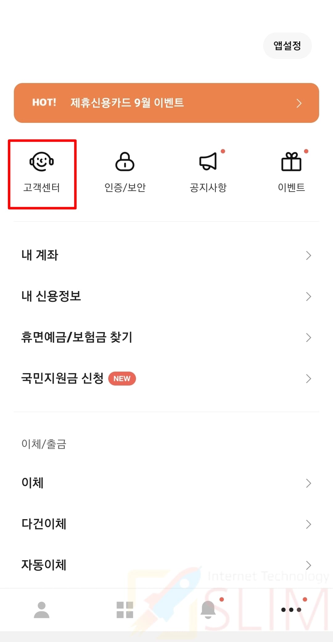 3. 고객센터를 클릭합니다.