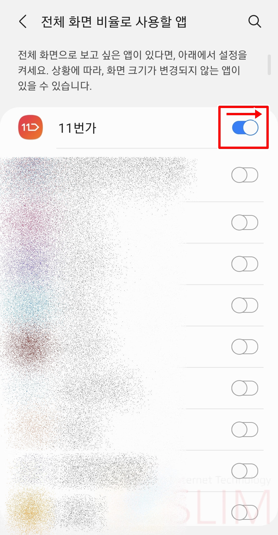 3. 화면 비율을 맞추고 싶은 앱을 활성화합니다.
