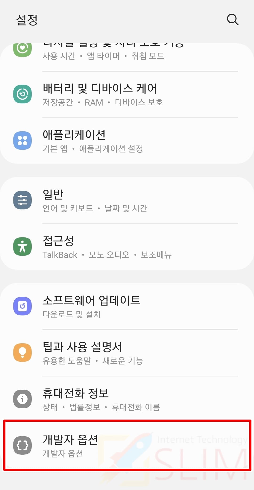 5. 설정 홈 화면 하단에 생긴 개발자 옵션을 클릭합니다.