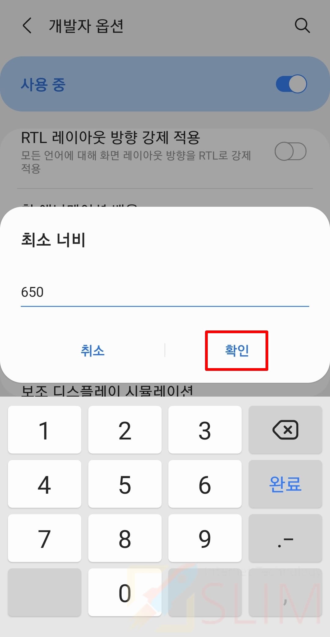 7. 원하는 DPI 너비값을 입력한 후 확인을 누릅니다.