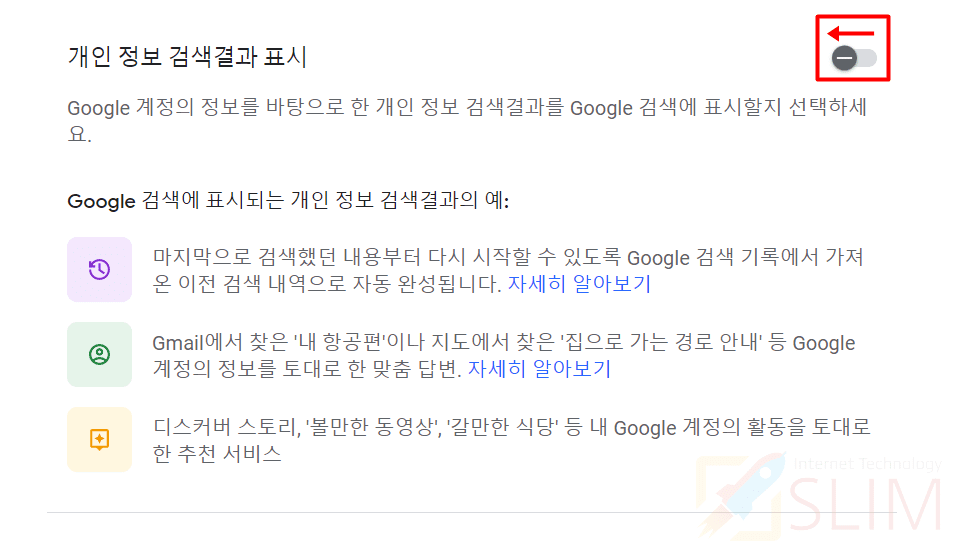 10. 구글 검색기록 저장 기능이 꺼집니다.