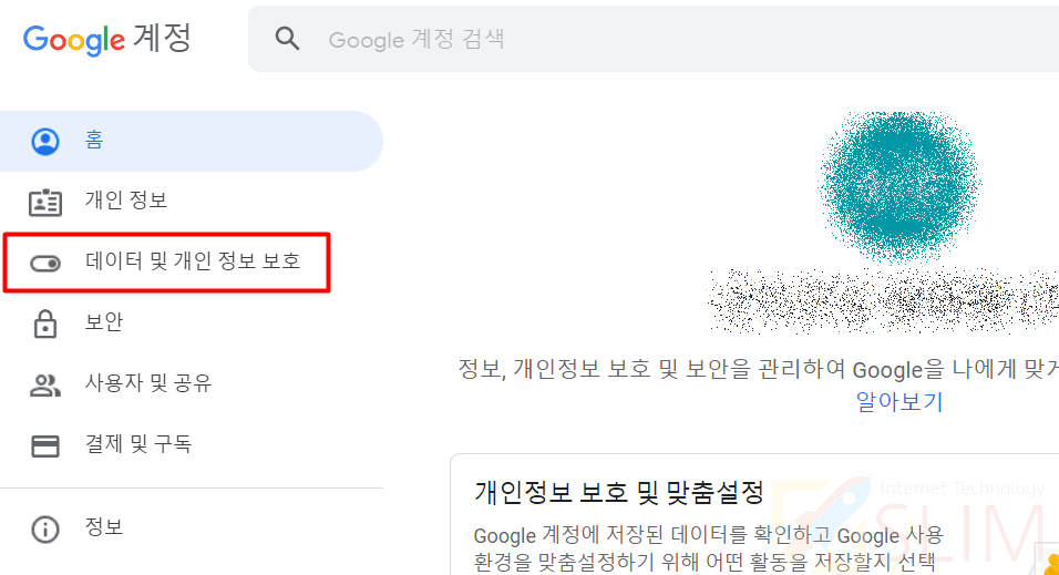4. 데이터 및 개인 정보 보호 항목을 클릭합니다.