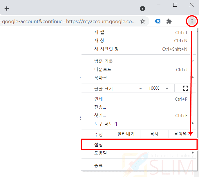 1. 크롬 인터넷 우측 상단의 더보기 버튼(점 3개 모양)을 누릅니다.
