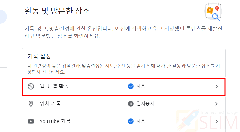 5. 기록 설정에서 웹 및 앱 활동을 누릅니다.
