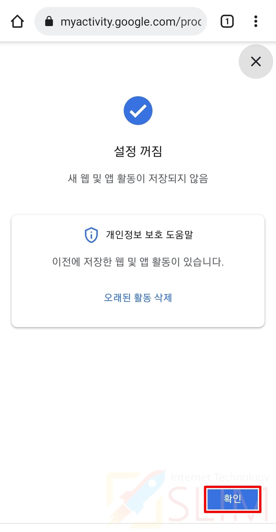 5. 웹 및 앱 활동에 저장을 클릭합니다.