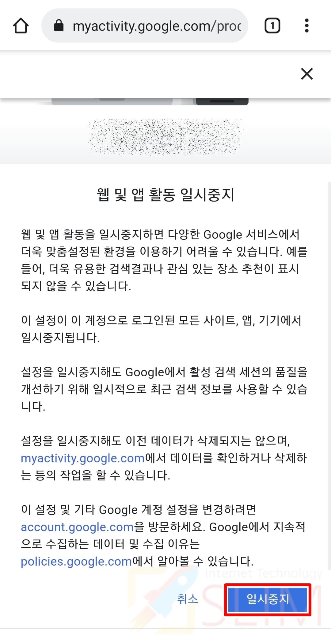 6. 현재까지 저장된 모든 구글 검색기록이 지워집니다.