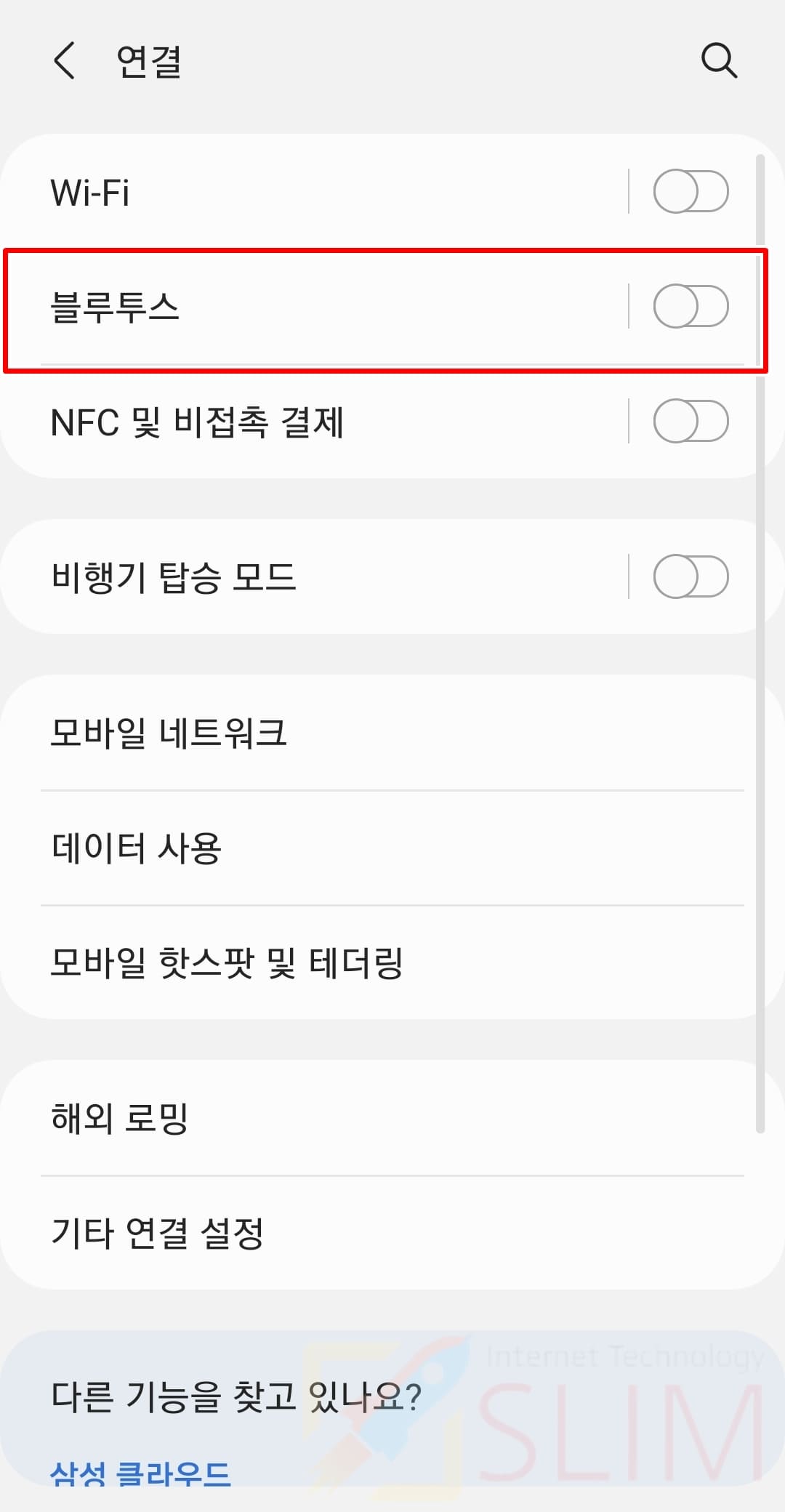 위 버튼은 갤럭시와 블루투스 연결이 완료될 때까지 계속 누르고 있어야 합니다.