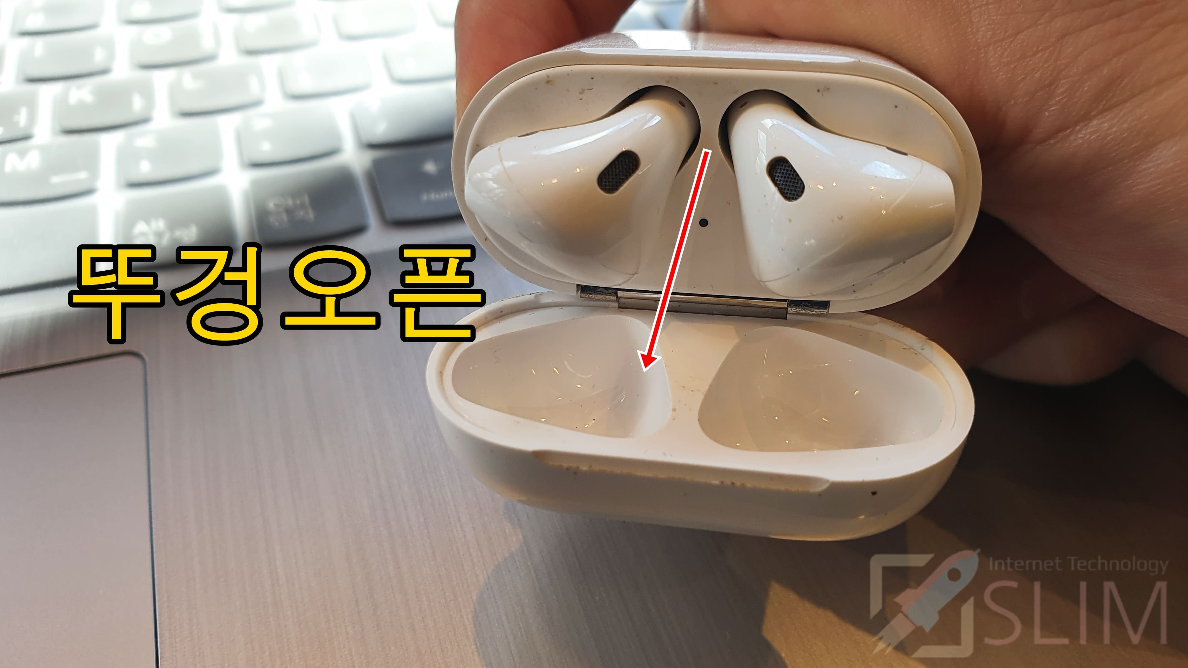 1. 에어팟 케이스의 뚜겅을 열어줍니다.