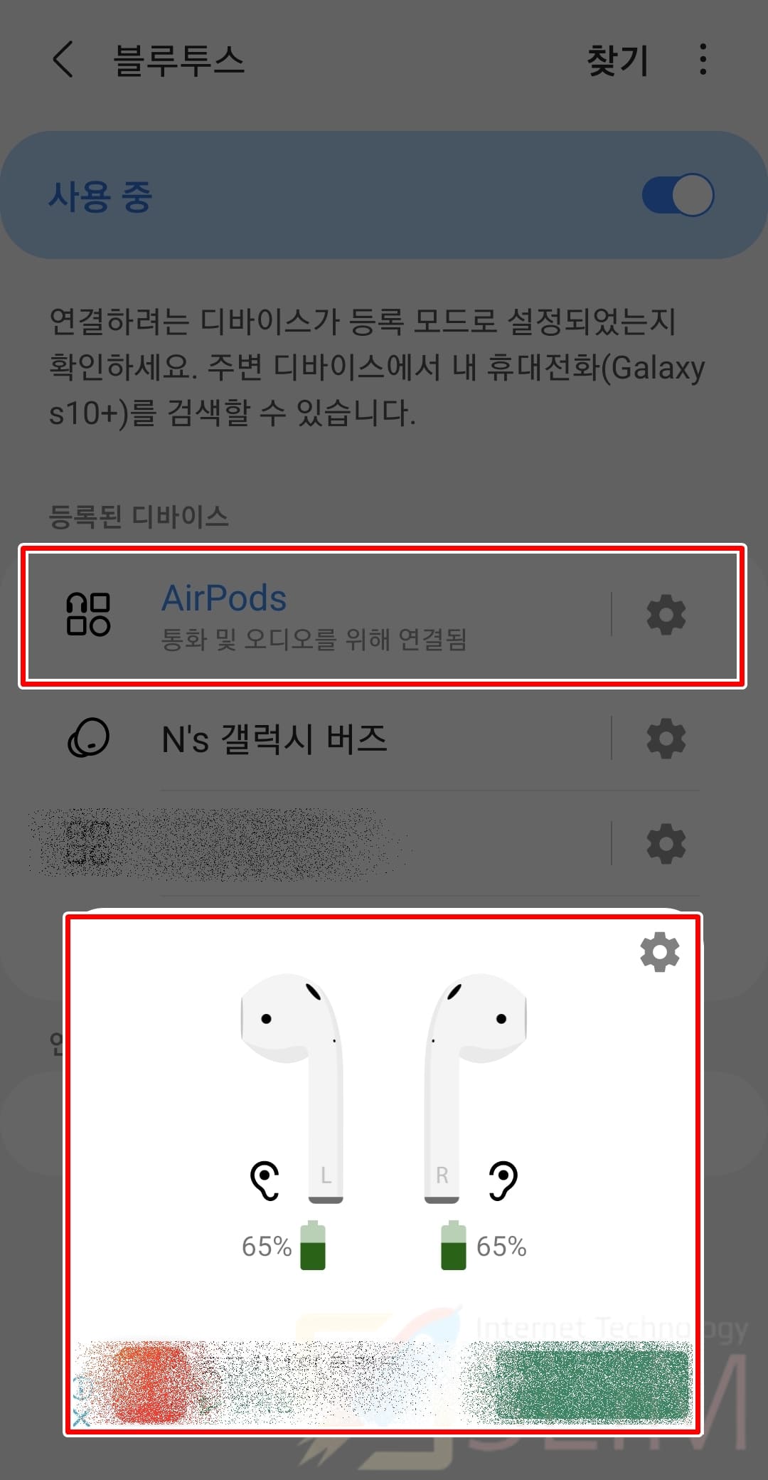 저도 갤럭시S10+를 이용하고 있지만 애플의 디자인이 마음에 들어서 에어팟을 하나 구입하여 이용하고 있는데요. 다행히도 무선 이어폰들은 모두 블루투스로 동작되다보니 에어팟에 있는 모든 기능들을 갤럭시에 쉽게 호환해서 사용할 수 있었습니다. 그래서 갤럭시 에어팟 연결뿐만 아니라 에어팟을 직접 손가락으로 눌러서 이용하는 노이즈 캔슬링이나 음악 재생, 멈춤 제어등을 사용할 수 있으며 배터리 잔량 확인까지 모두 갤럭시 안에서 이용할 수 있습니다.