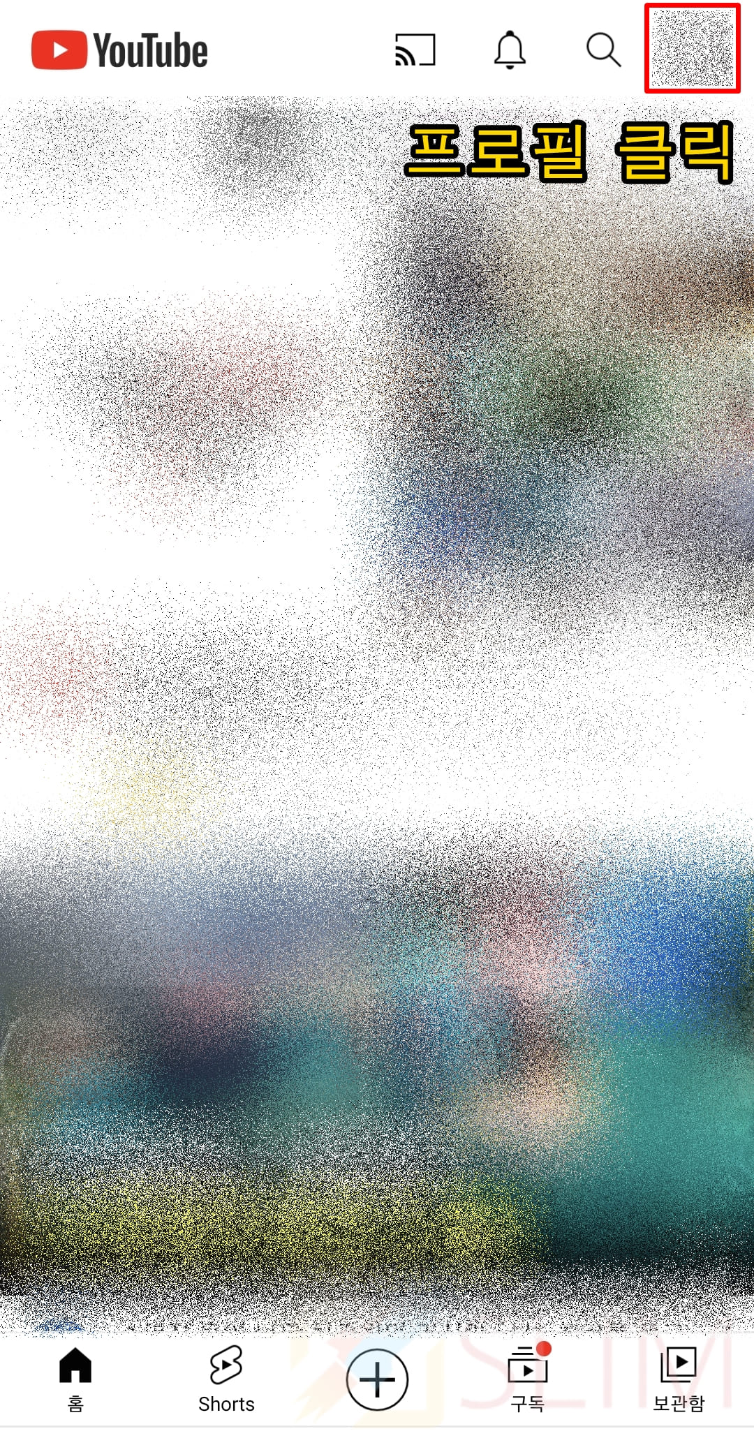 1. 유튜브 앱에서 우측 상단 나의 프로필을 클릭합니다.