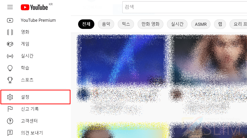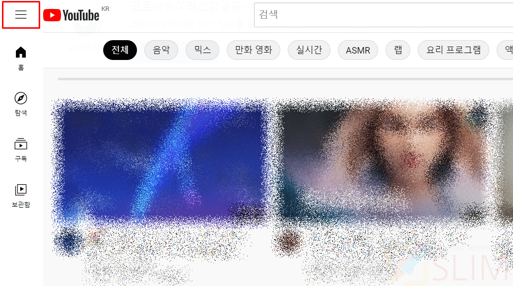 1. PC 유튜브 사이트 좌측 상단의 더보기버튼(3줄 모양)을 클릭합니다.