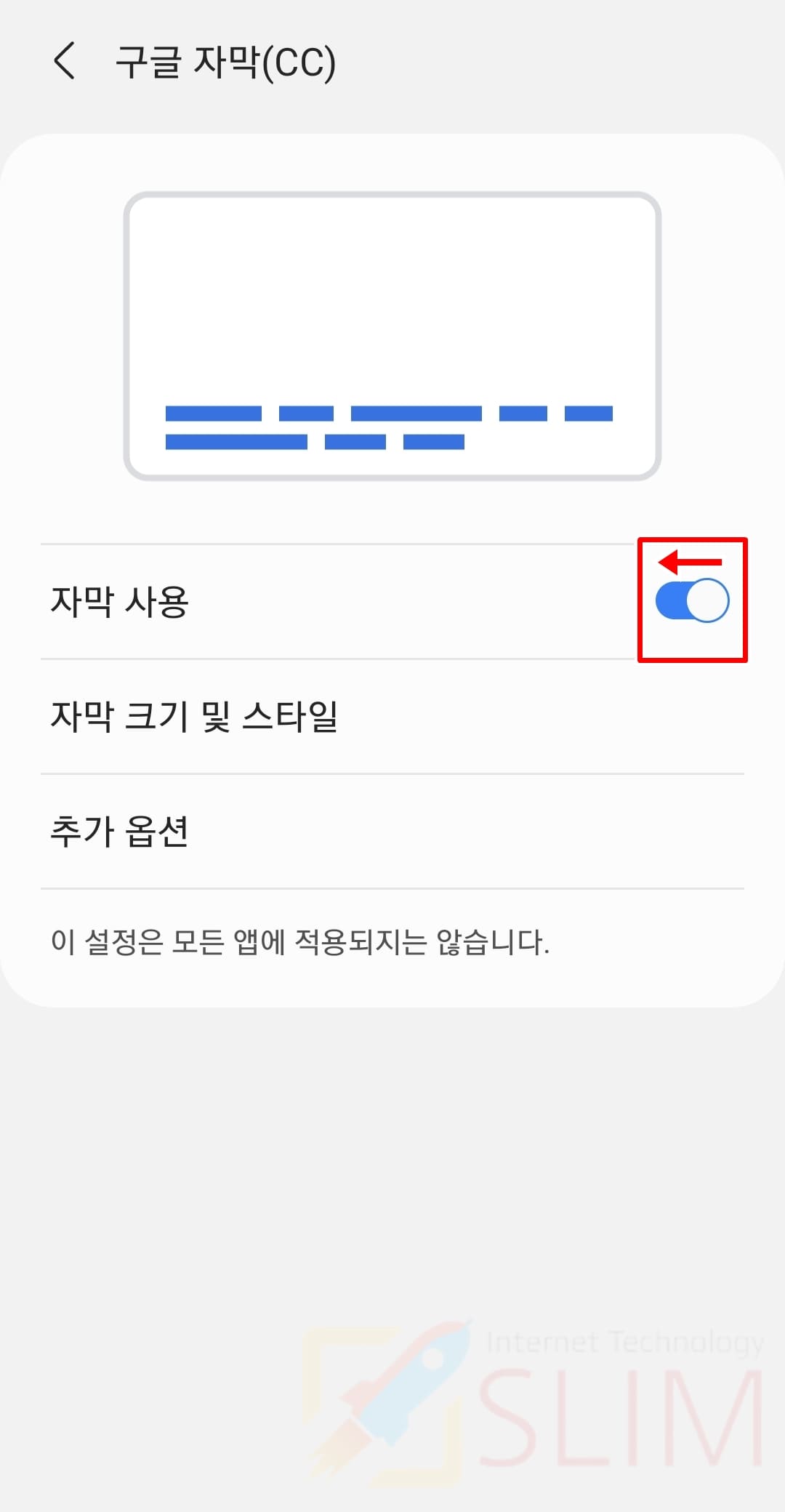 4. 자막 사용 기능을 눌러 왼쪽으로 비활성화시킵니다.