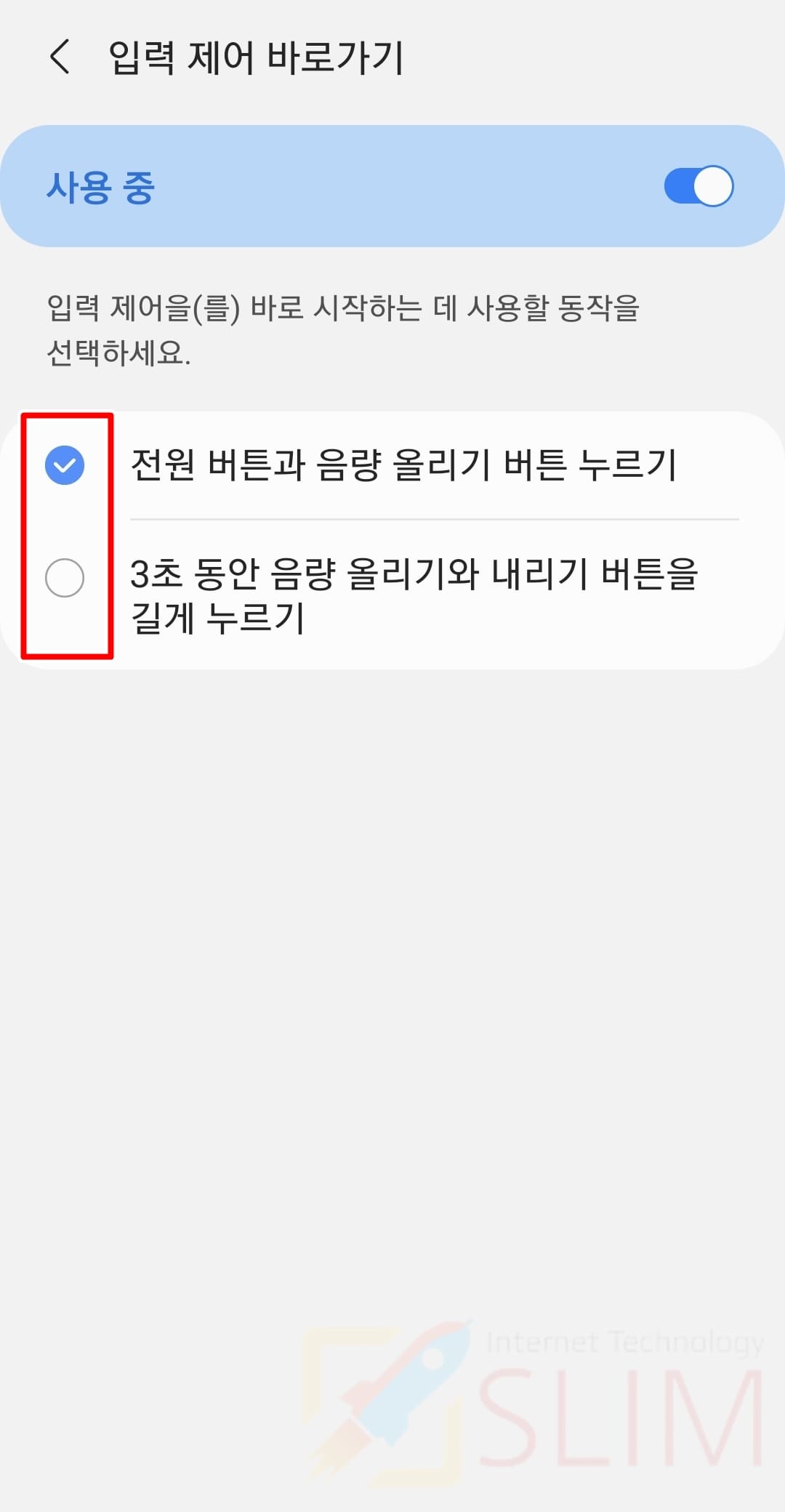 3. 3초 동안 음량 올리기와 내리기 버튼을 길게 누르기로 변경합니다.