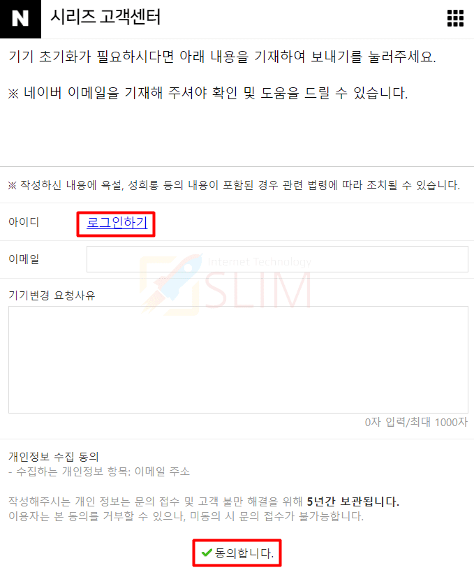 만약 위에 방법을 이용해도 네이버시리즈 등록기기 해제가 되지 않고 "고객센터에 문의하세요" 메시지가 노출된다면 시리즈 고객센터의 초기화를 요청할 수 있습니다.