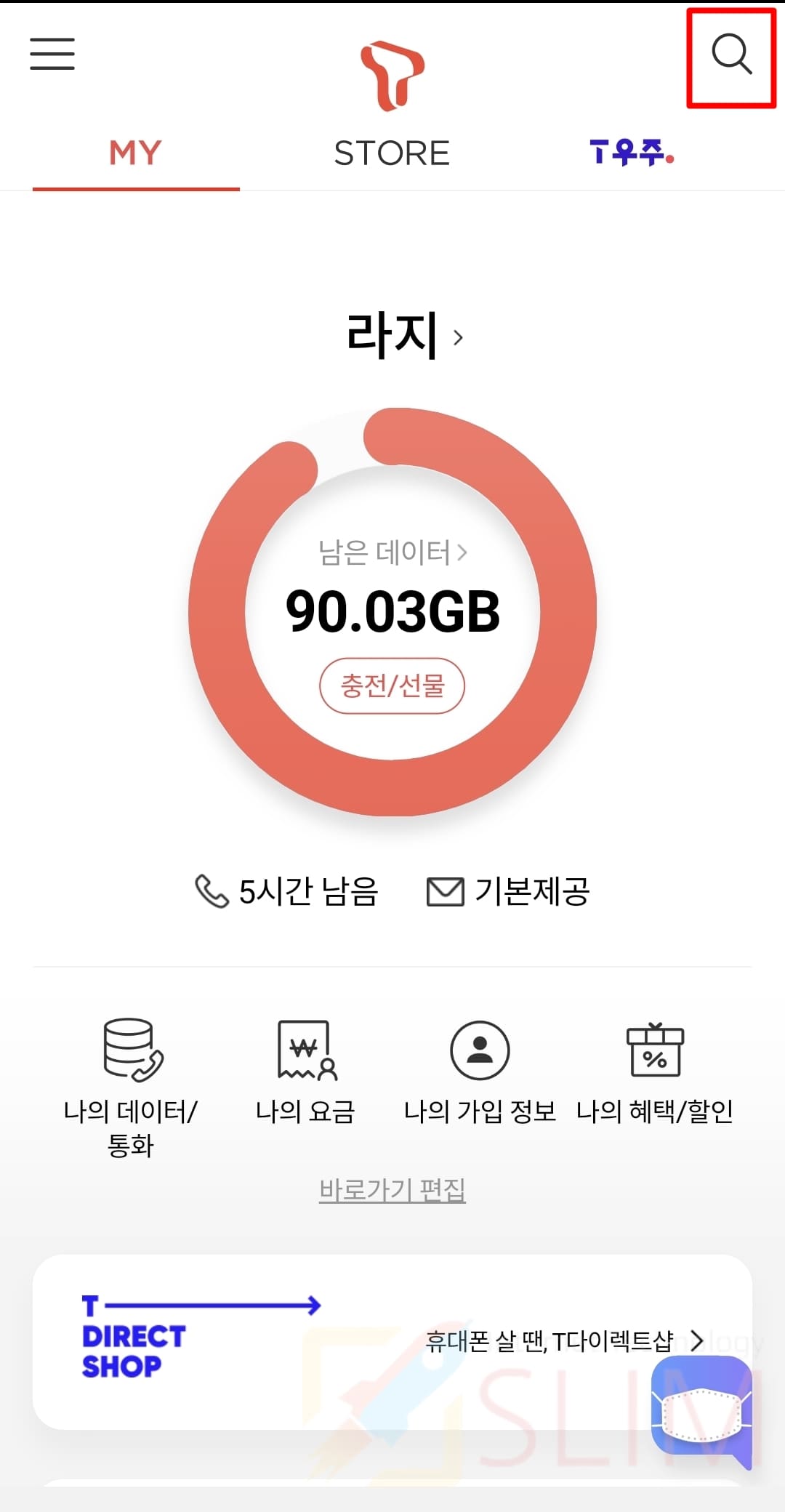 1. 스마트폰에서 T world 어플리케이션을 실행합니다.