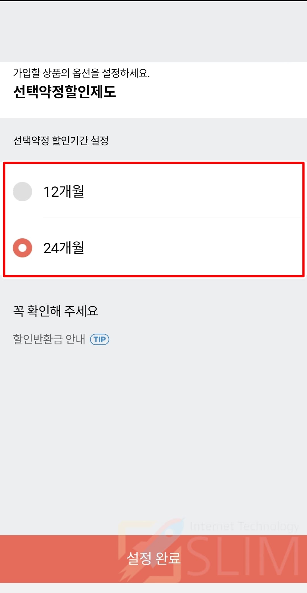 5. 선택약정 할인기간 중 12개월과 24개월을 선택합니다.