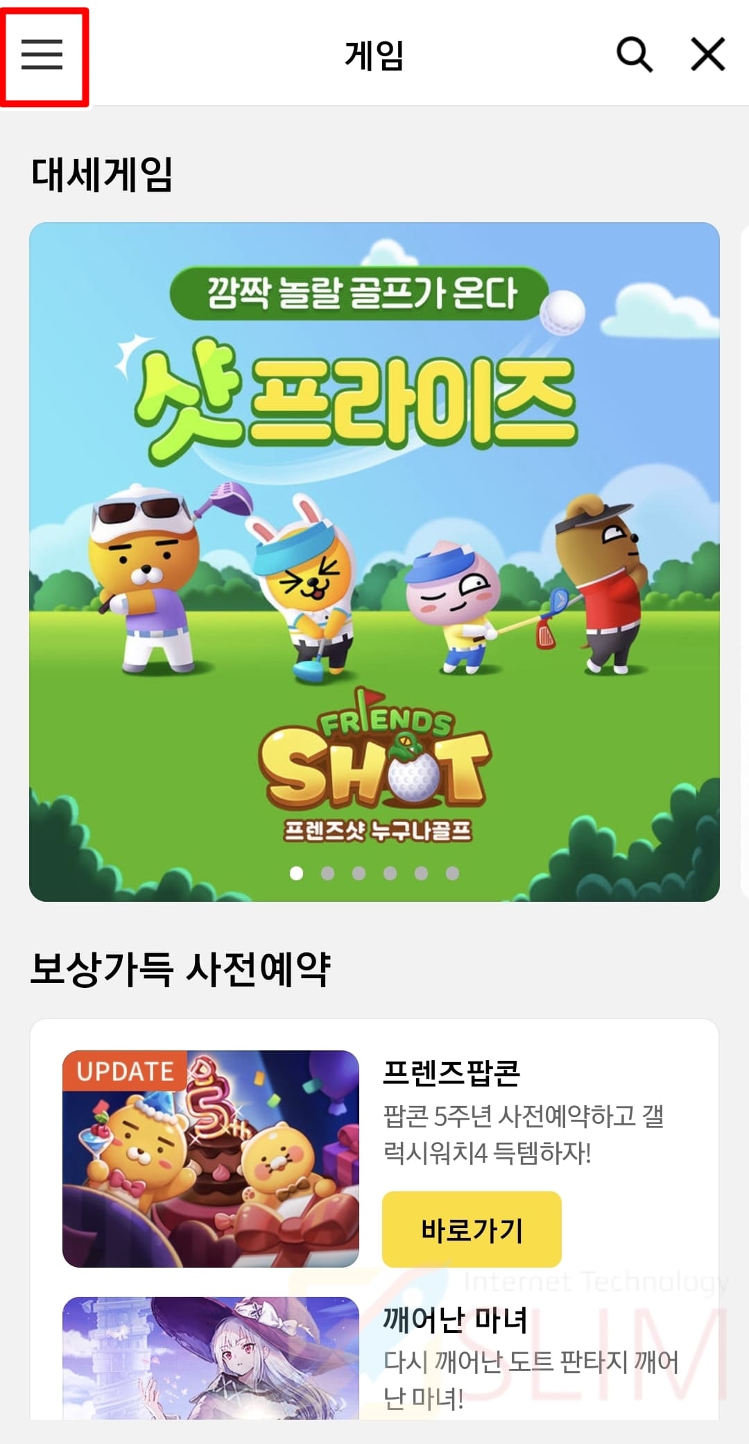 3. 좌측 상단의 더보기 버튼(줄 3개 모양)을 클릭합니다.