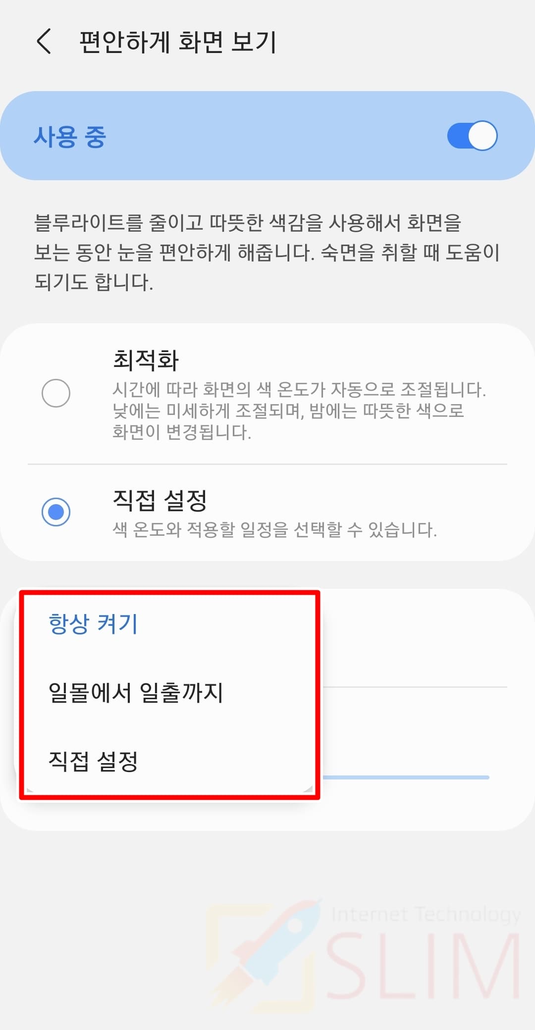 6. 편안하게 화면을 볼 시간대를 선택합니다.