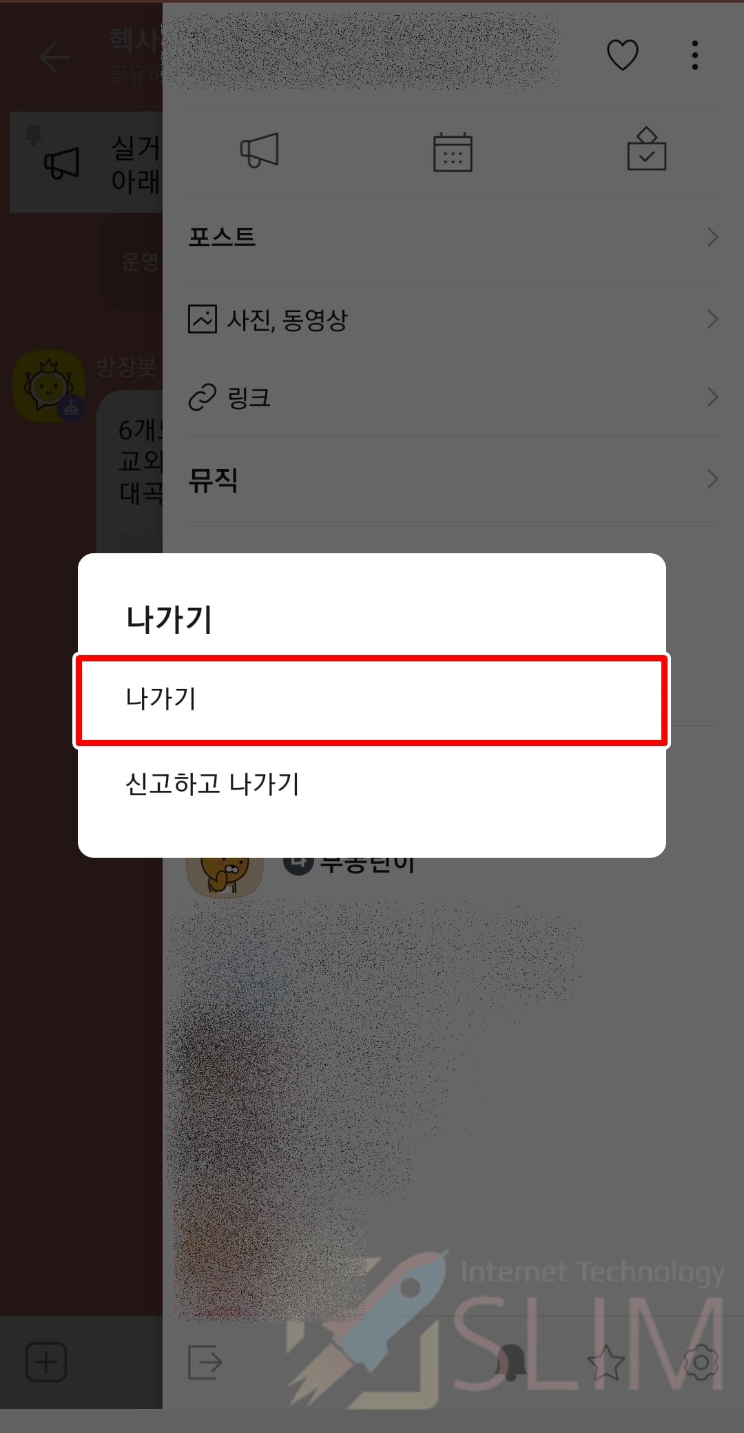 6. 하단의 채팅방 나가기를 누릅니다.