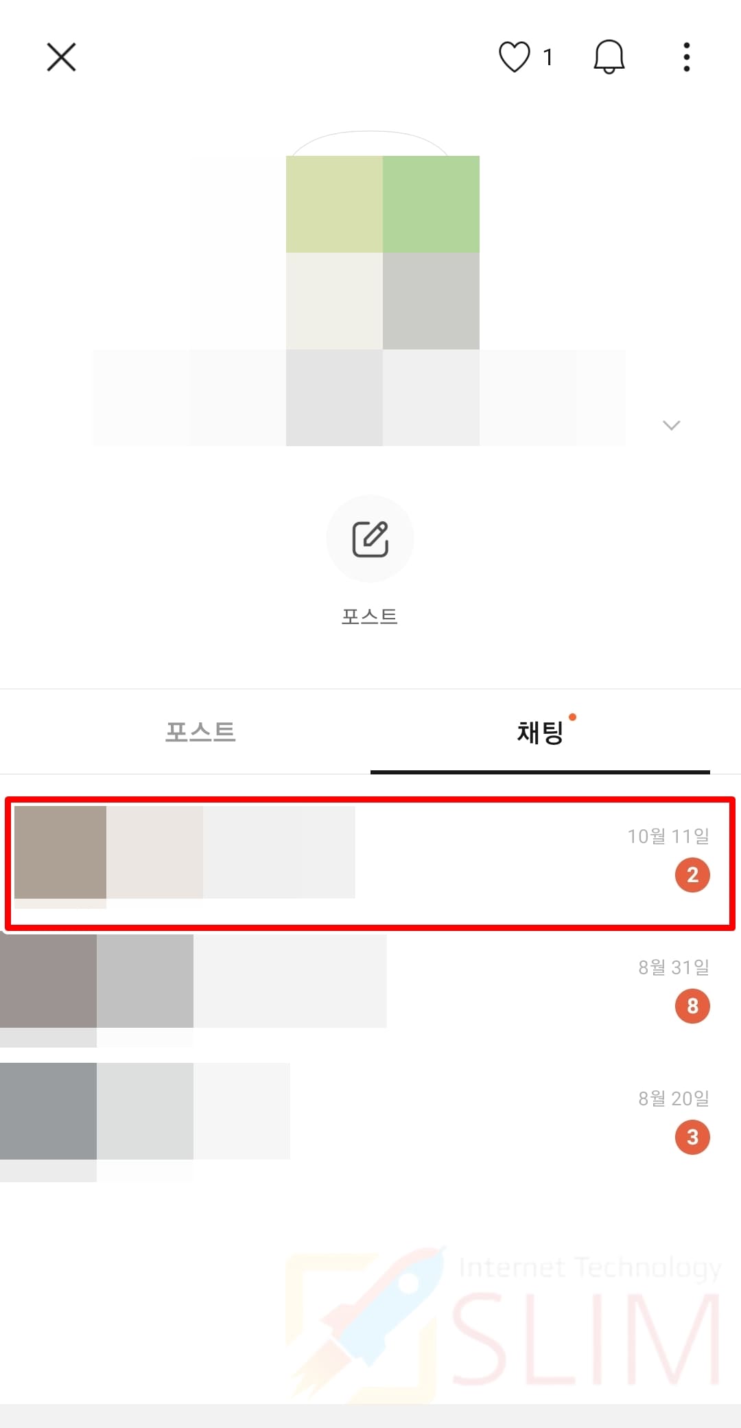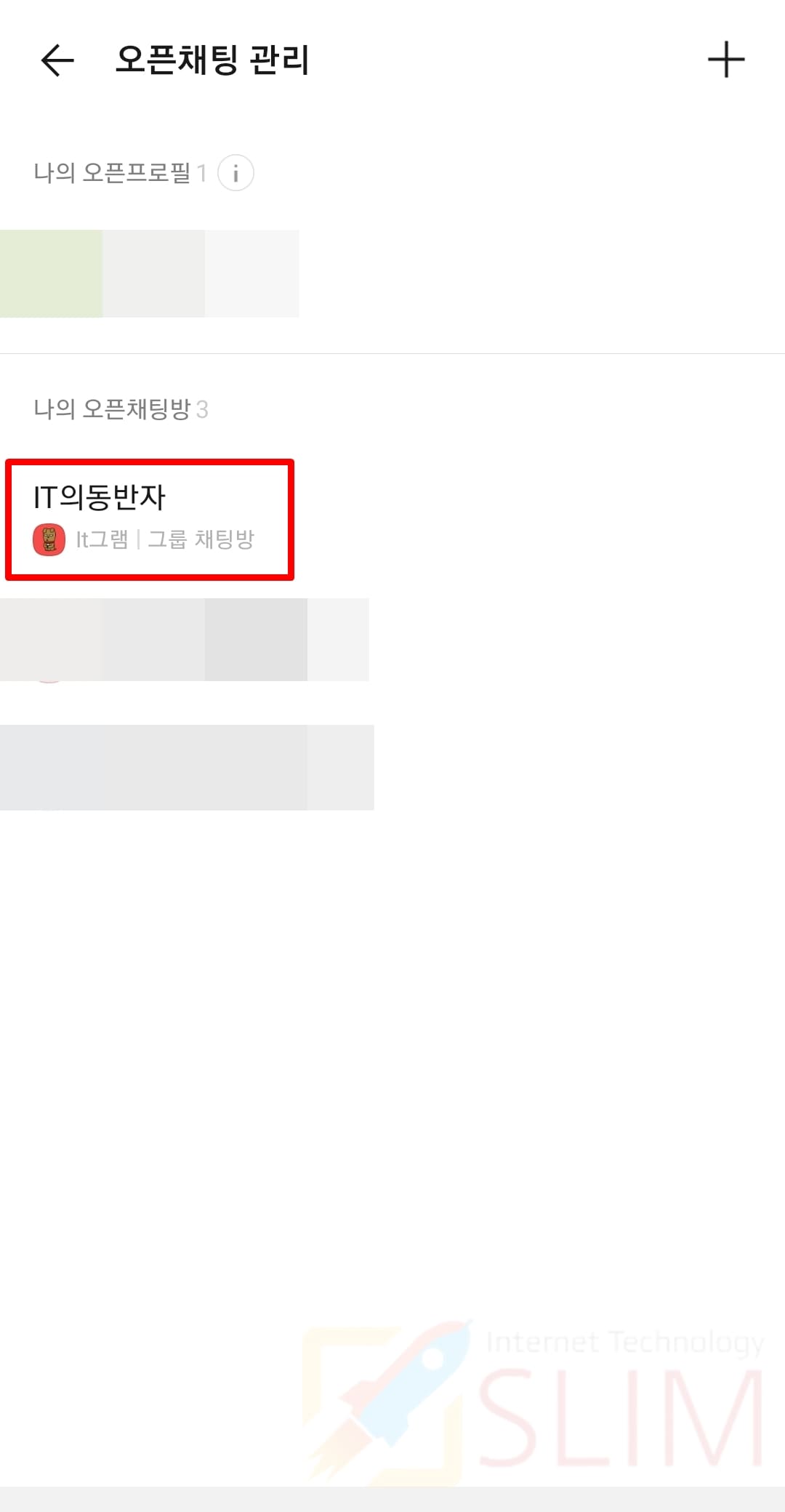 1. 목록에서 나의 프로필 1:1 오픈채팅방을 클릭합니다.