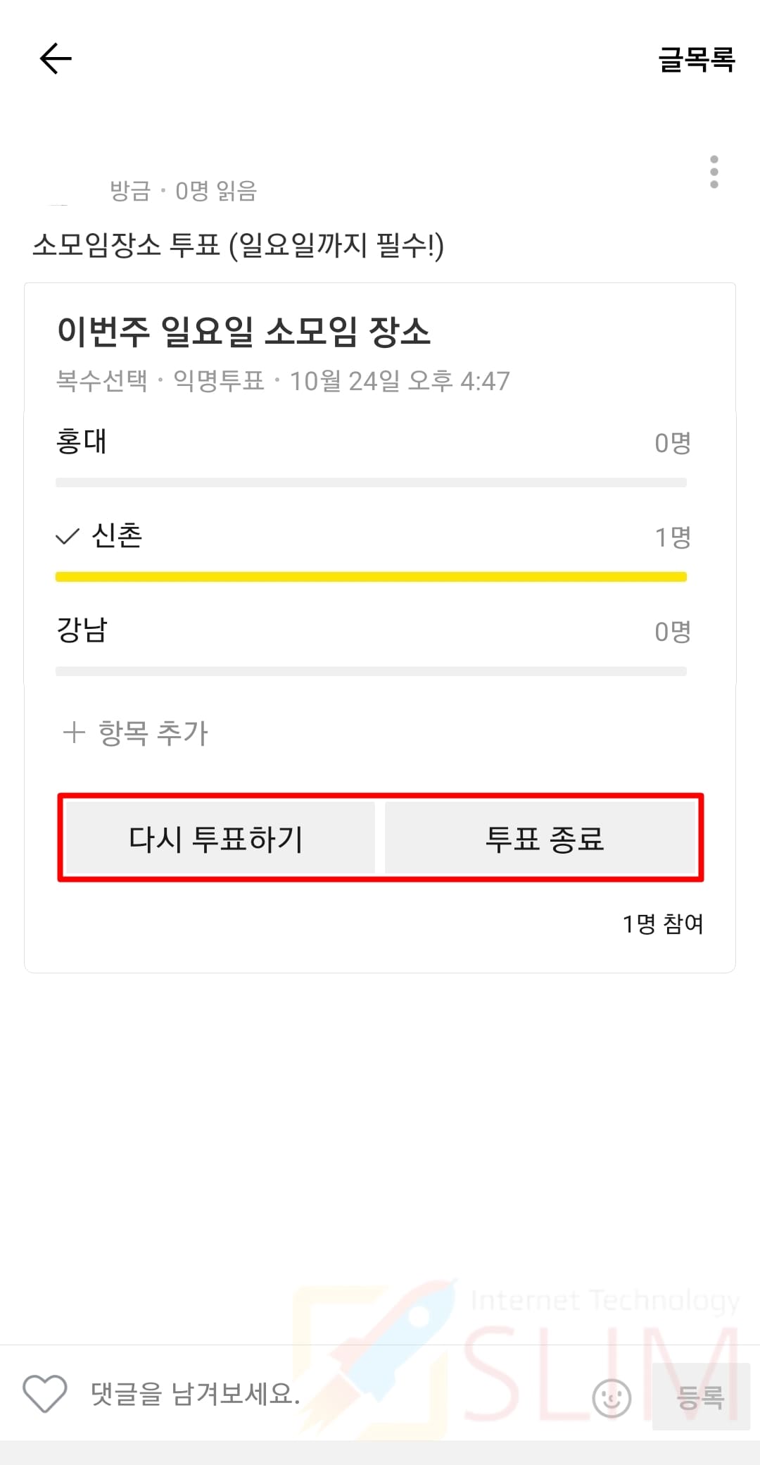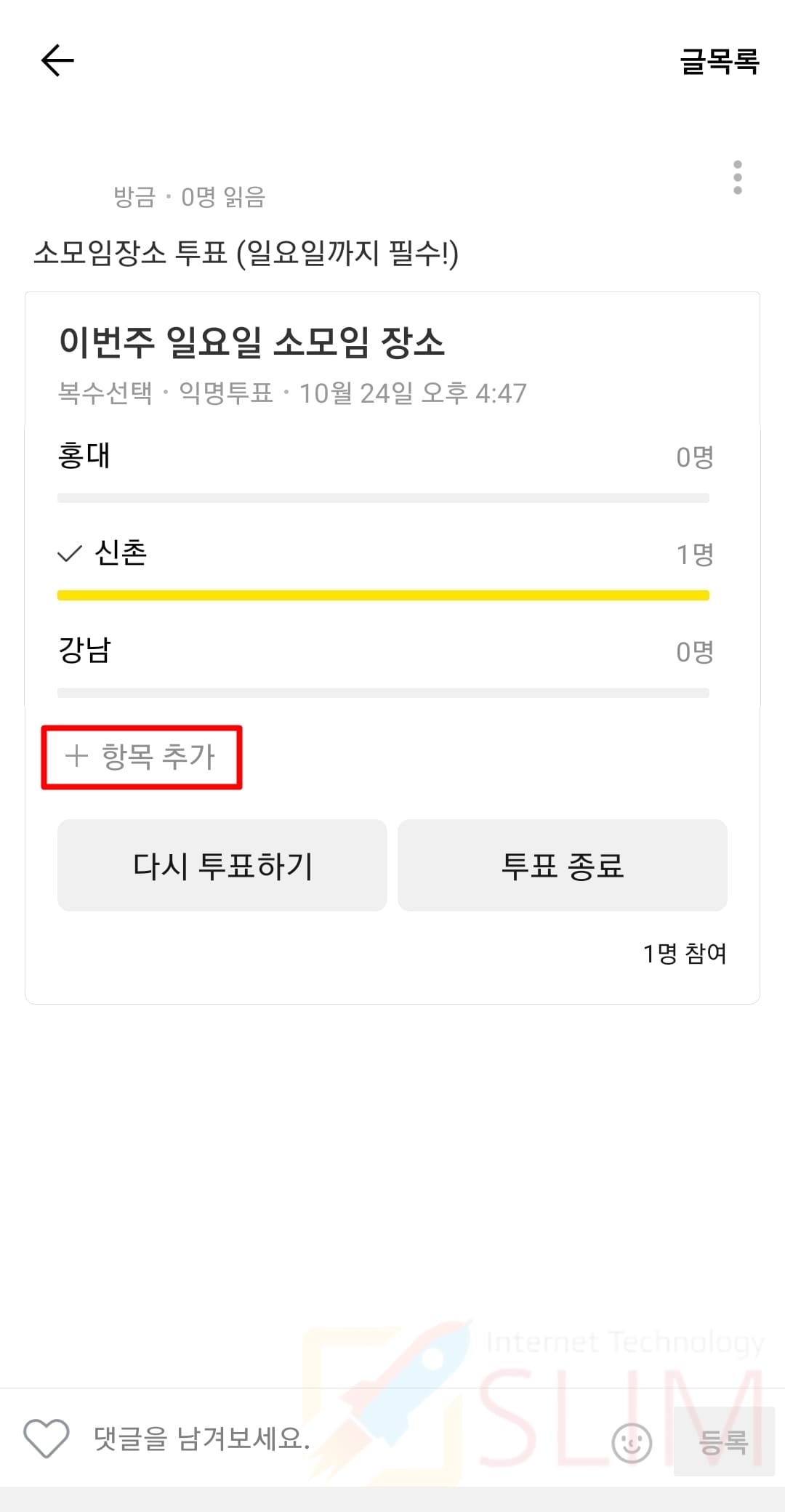 3. 투표 항목이 추가됩니다.