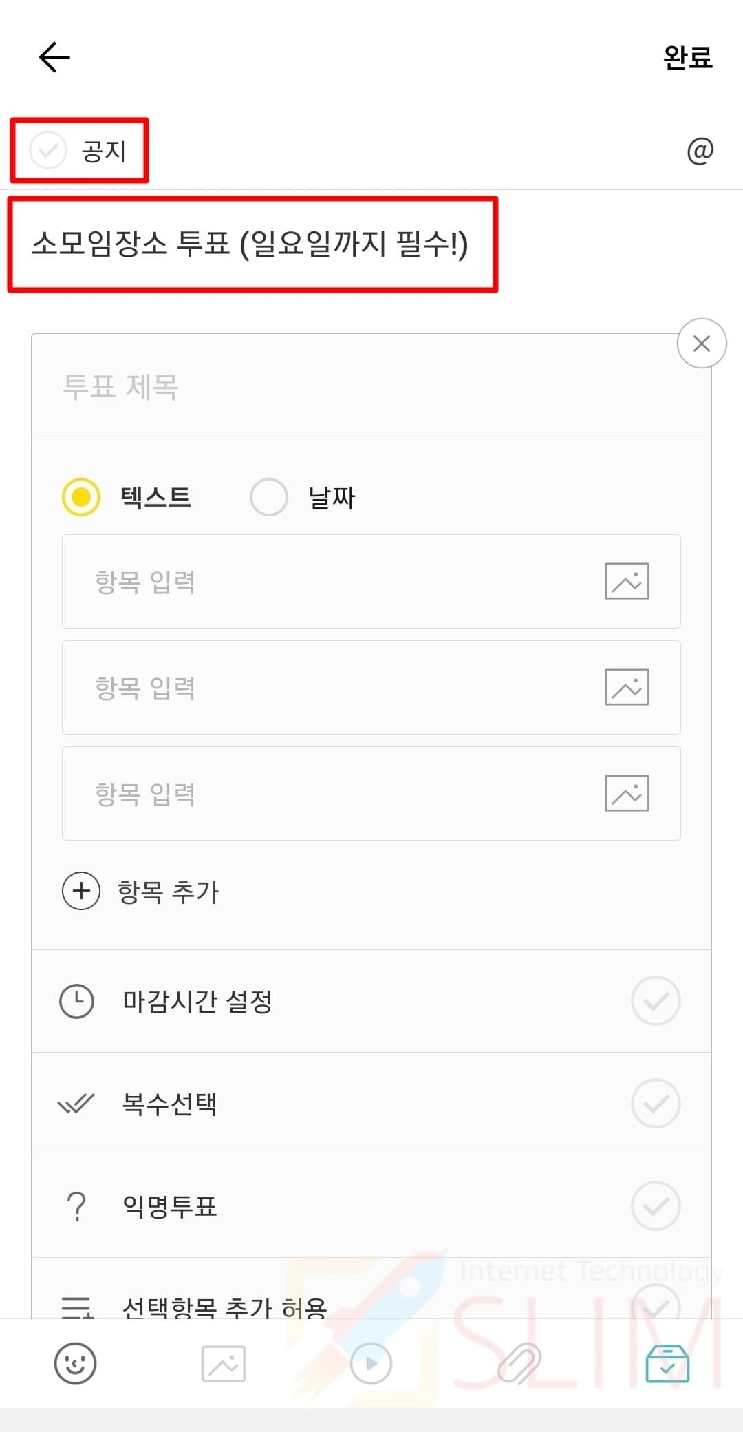 5. 투표를 채팅방 공지에 올리고 싶다면 공지에 체크합니다.