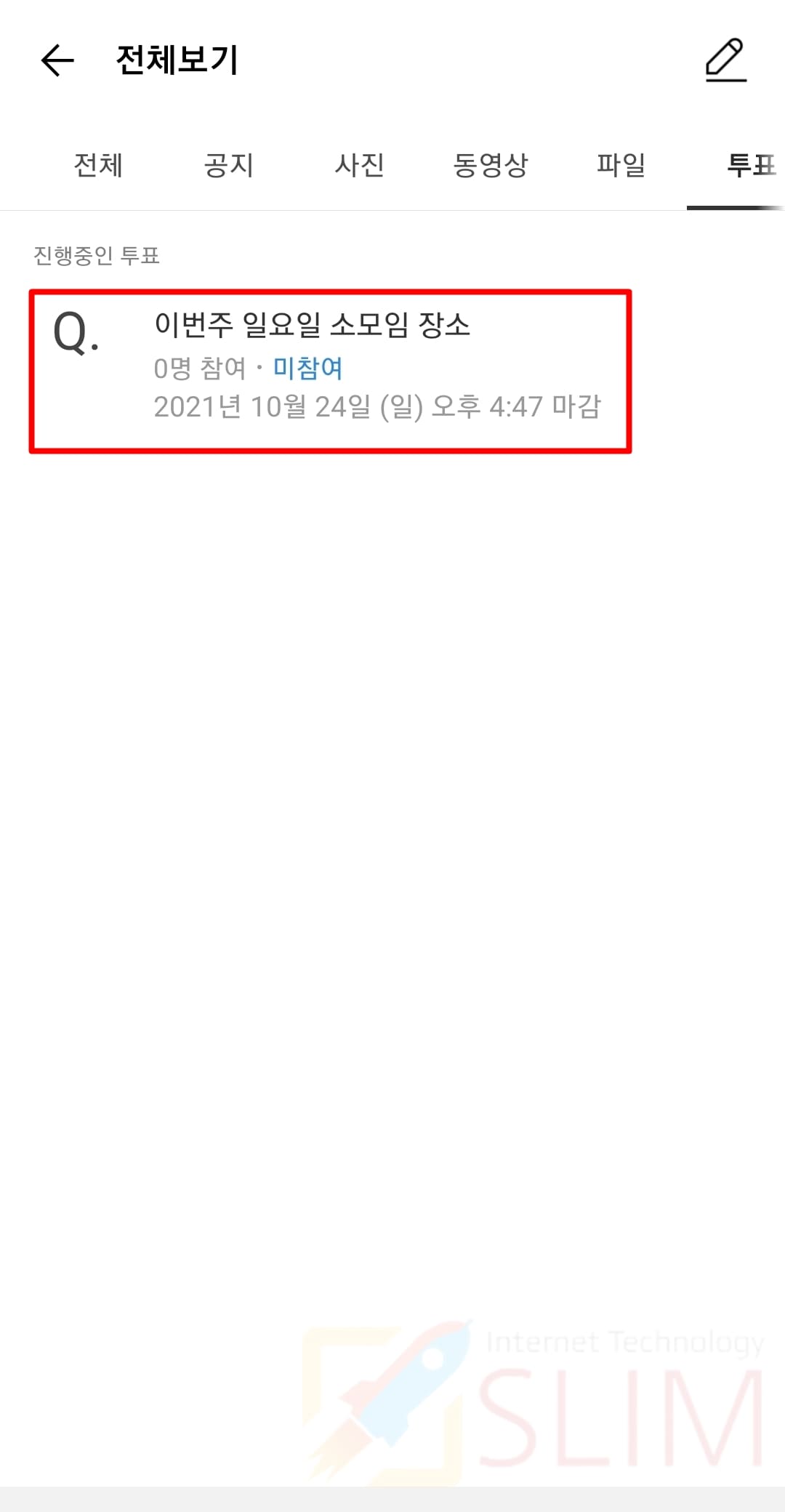 4. 우측 상단의 연필 모양 또는 투표 올리기를 클릭합니다.