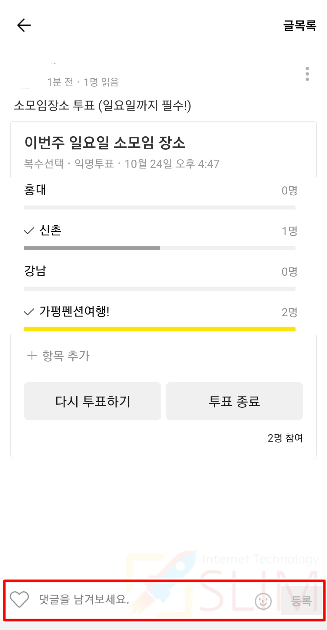 3. 투표 화면 하단에 입력한 댓글이 표시됩니다.