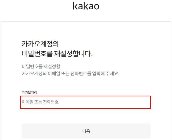 3. 나의 카카오계정 이메일 아이디를 입력합니다.