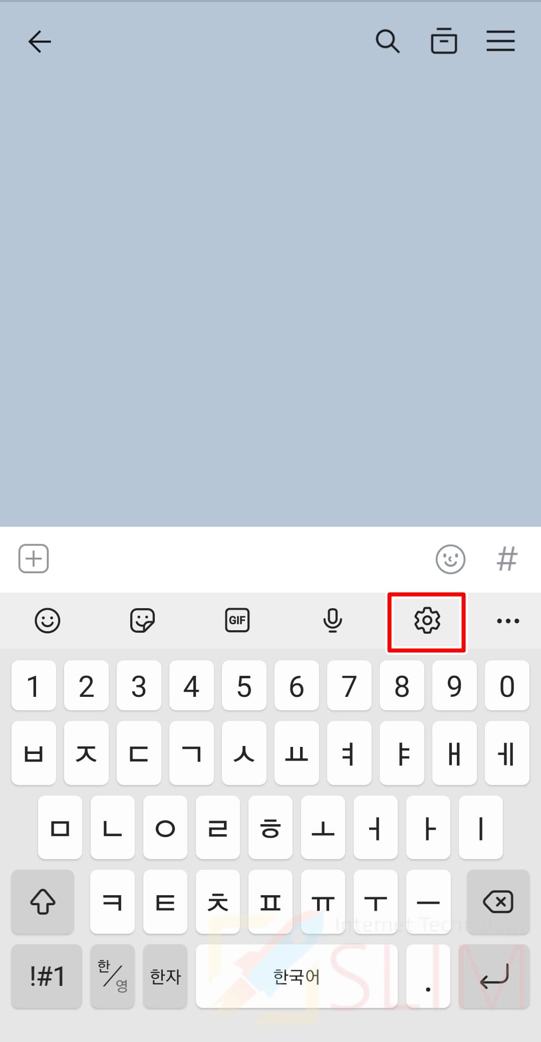 ▲ 텍스트 입력창을 눌러서 키보드 자판이 나왔을 때 우측 상단의 톱니바퀴 버튼을 눌러줍니다.