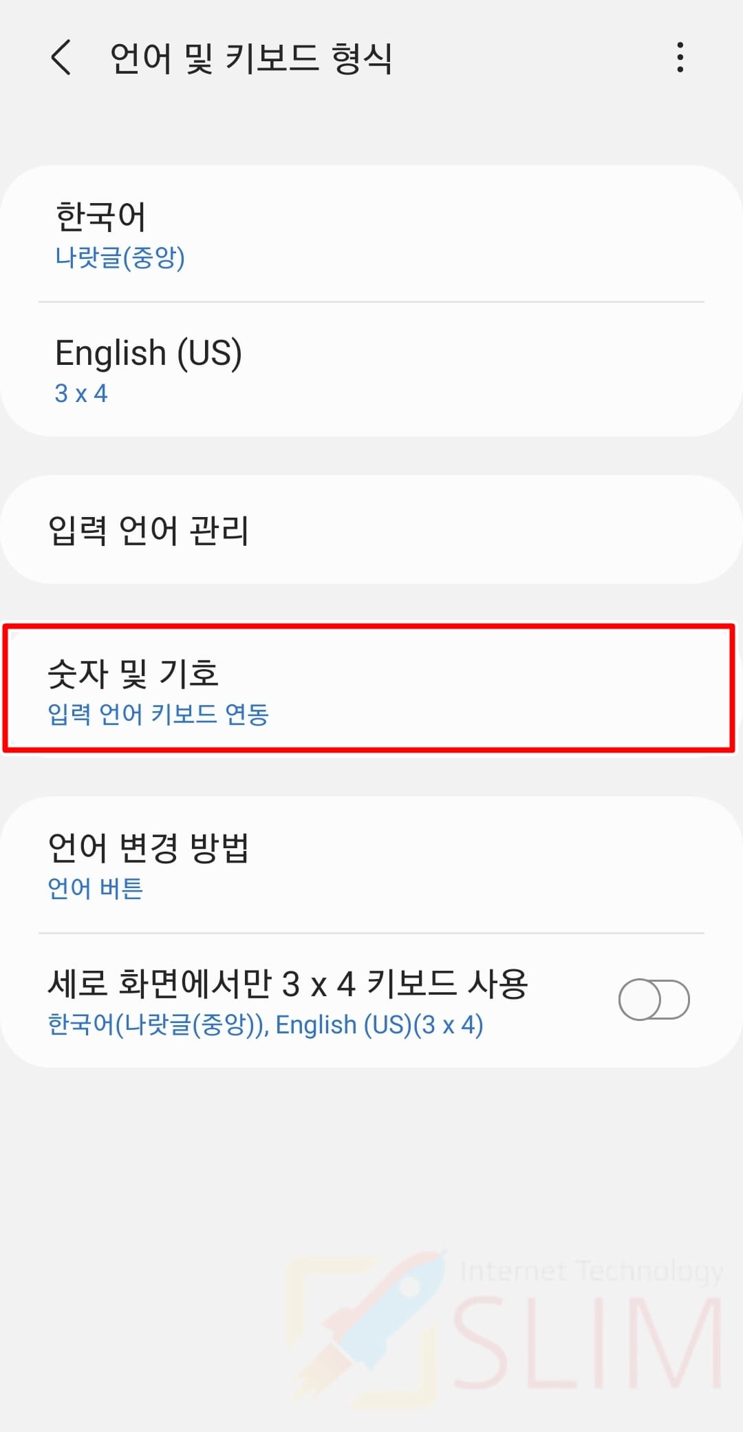 갤럭시 키보드 변경으로 기본적인 자판의 모양을 설정하셨다면 이제 숫자 및 기호의 자판 모양을 선택할 차례입니다. 숫자 및 기호를 이용할 때에는 대다수 키보드에서 특정한 버튼을 누르는 경우가 있는데 이 때 쿼티형식이나 3X4 형식으로 보여지게 만들 수 있습니다. 물론 쿼티와 같이 이미 숫자나 기호가 포함된 자판이라면 입력 언어 키보드 연동을 사용하시면 됩니다.