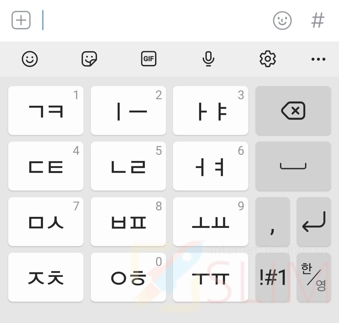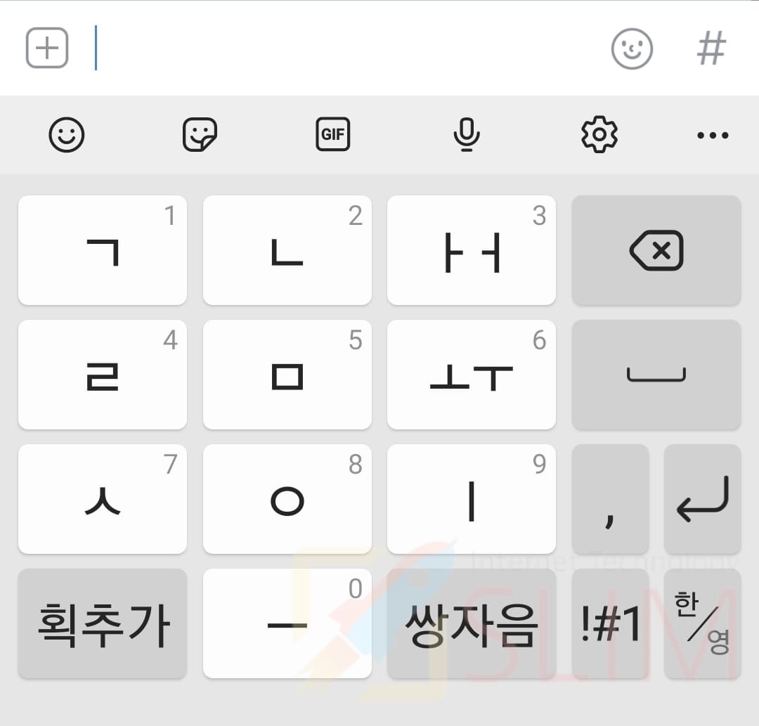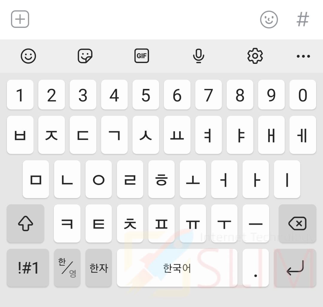두번째는 갤럭시의 기본 키보드인 천지인 키보드입니다. 아이폰이 아닌 삼성에서 오랫동안 사용된 자판의 디자인으로 과거 피쳐폰에서도 이용되었던 자판 구성이기 때문에 익숙함을 느끼시는 분들이 많습니다. 두번 눌러 자음을 자꾸고 위 상단의 ㅣ,.,-로 모음을 쉽게 만들 수 있기 때문에 오타율도 적은 것이 장점입니다.