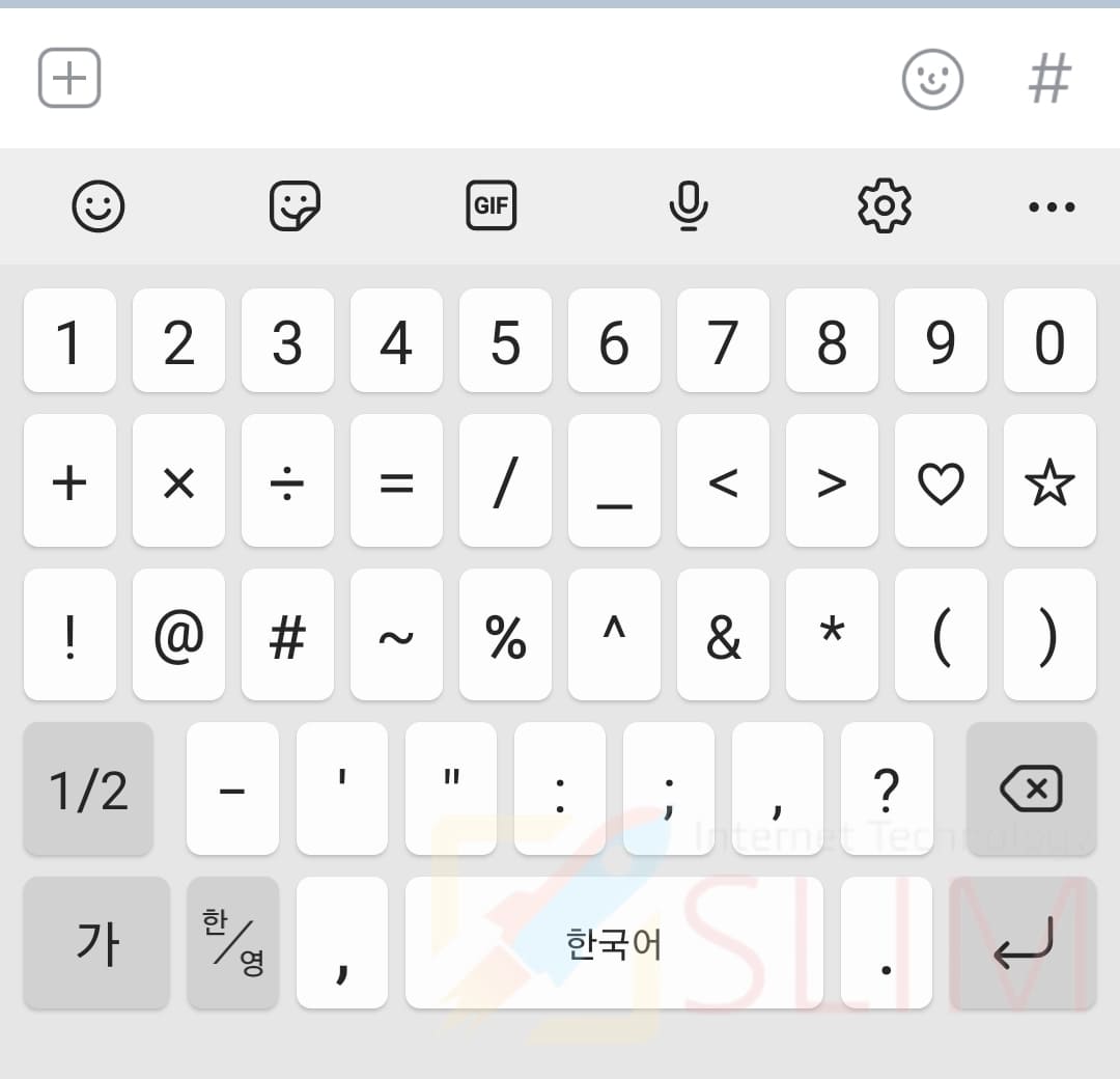 쿼티 키보드를 설정하면 예를 들어서 천지인 키보드에서 숫자 및 기호를 누르게 되면 위와 같이 쿼티로 이루어진 숫자와 특수문자 자판을 별도로 볼 수 있게 됩니다.