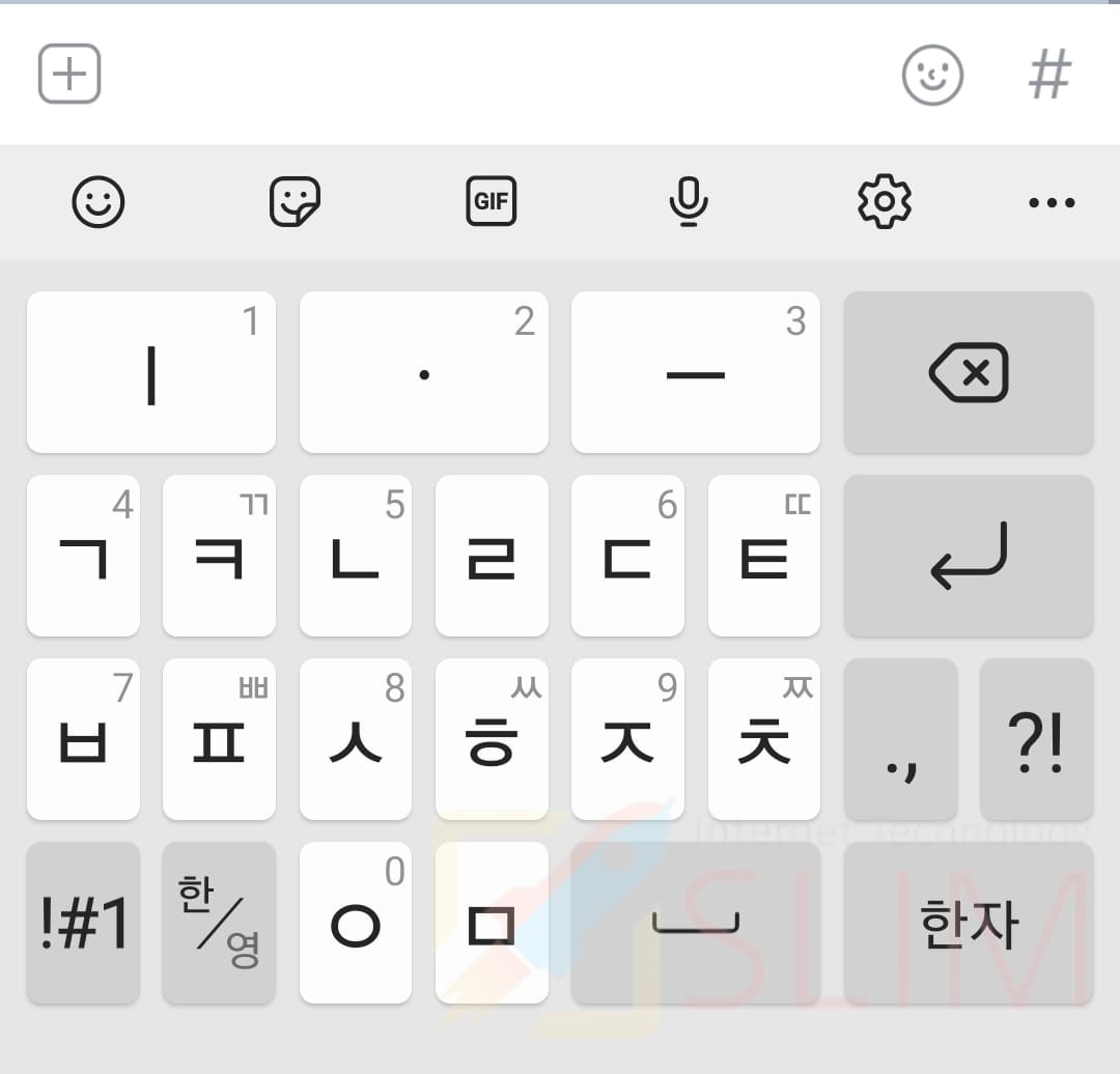 다음은 천지인 플러스 키보드입니다. 기존에 사용되던 첝지인에서 자판 모양세는 동일하지만 두번눌러서 자음의 모양을 변경했던 것과 달리 ㄱ/ㅋ이나 ㄴ/ㄹ처럼 구분된 것을 볼 수 있습니다. 이를 통해서 그동안 천지인 키보드에서 불편했던 쌍모음을 키보드상에서도 곧바로 확인할 수 있기 때문에 더 편리해진 것 같습니다. 제 주변에서도 이용하시는 분들이 꽤 있을 정도로 쿼티의 장점과 천지인의 장점을 합쳐놓았기 때문에 갤럭시 키보드 변경으로 추천드리며 한번 테스트겸 사용해보시는 것을 추천드립니다.