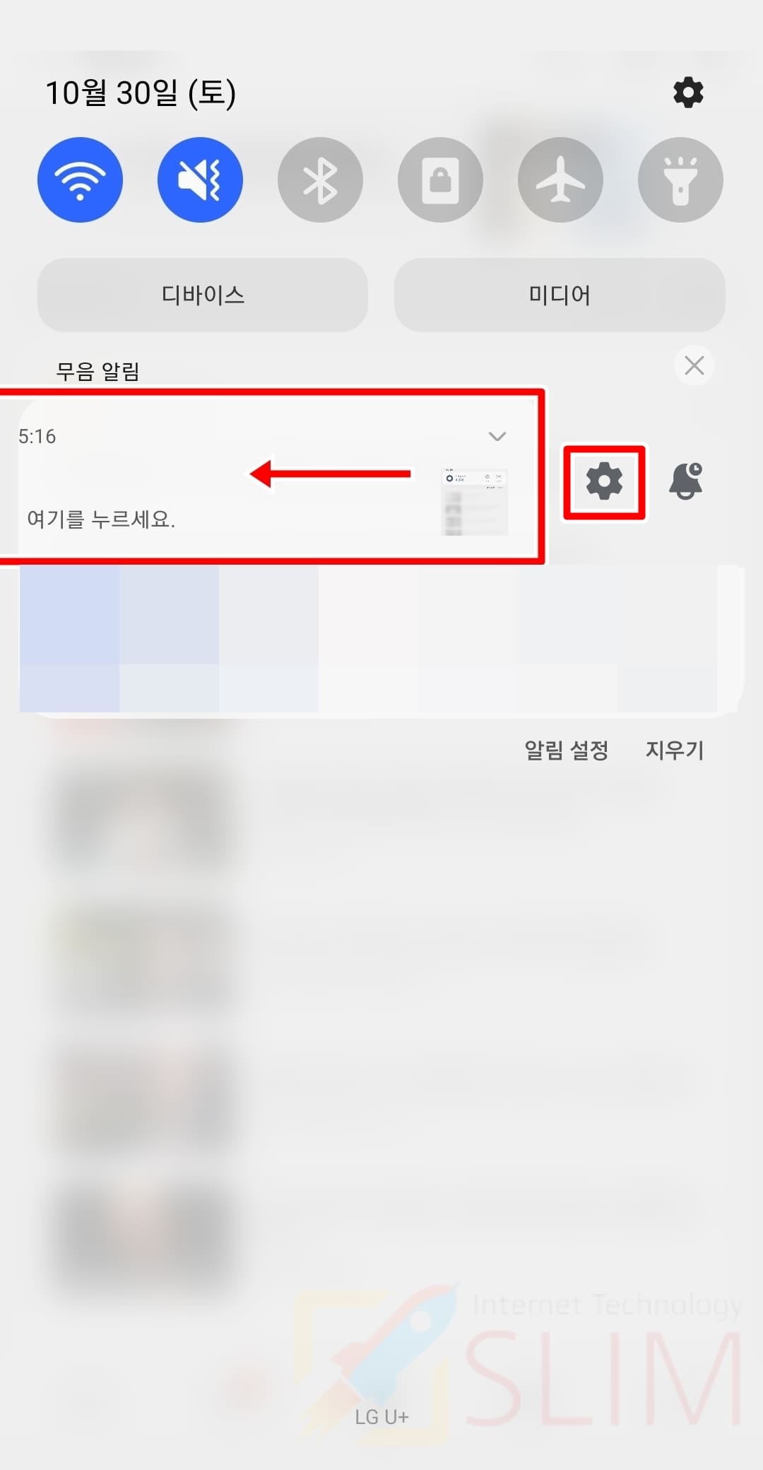 주의하실 것은 스크린샷 알림을 왼쪽으로 너무 길게 밀거나, 민 후 손을 떼시게 되면 상단바 알림이 단순히 사라지게 된다는 것입니다. 따라서 스크린샷 알림을 왼쪽으로 밀 때는 손을 절대 떼지마시고 톱니바퀴 설정 버튼이 보일 때까지 천천히 밀어주셔야 합니다.