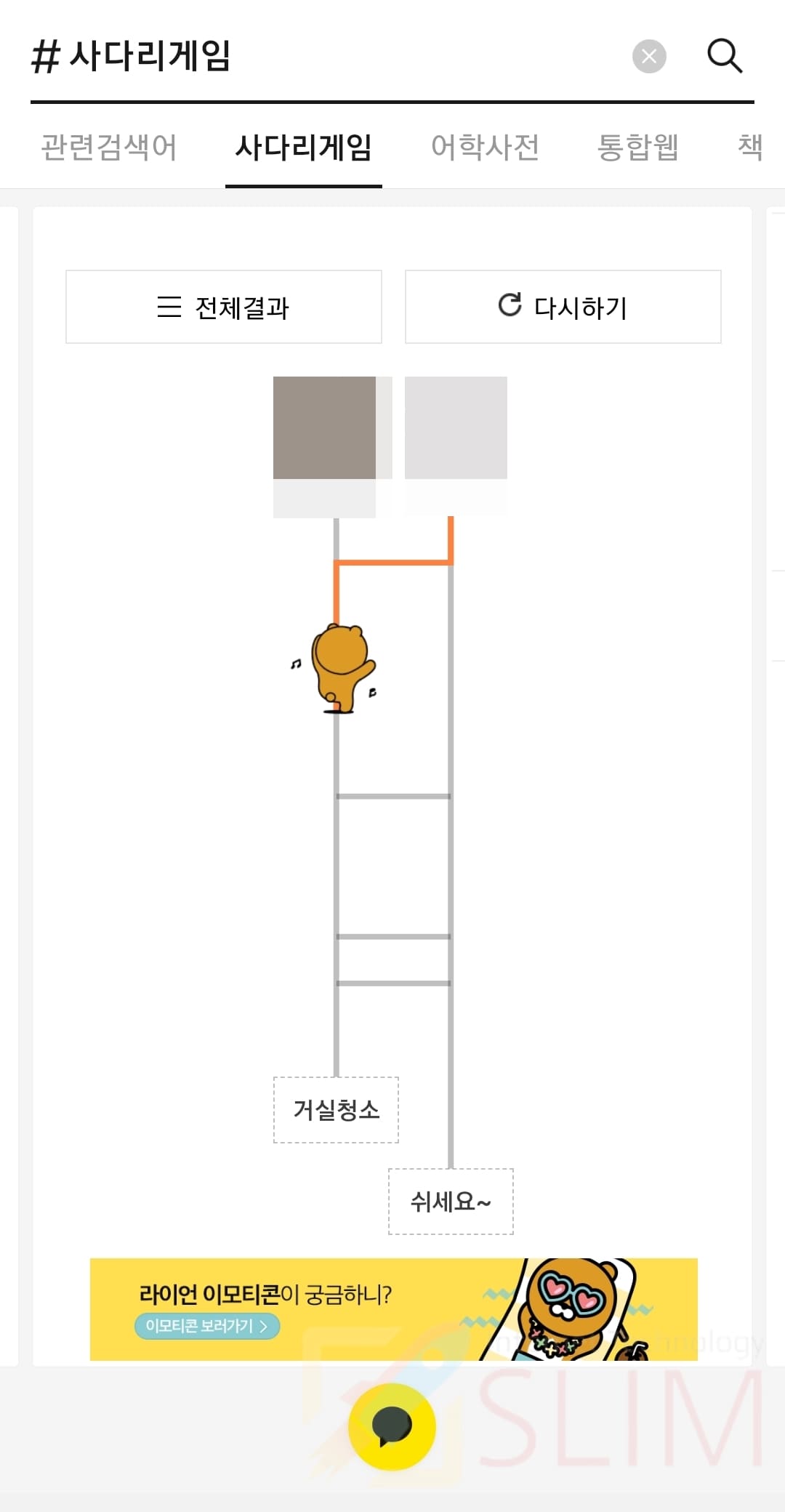 12. 카캉오톡 사다리게임 전체 결과를 확인합니다.