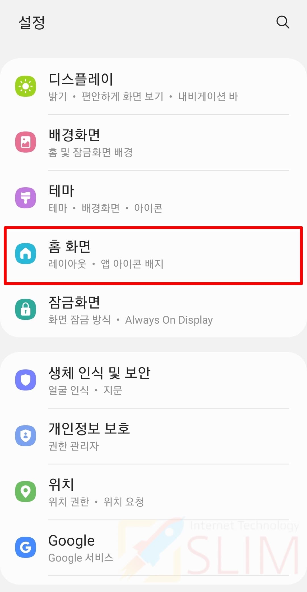 2. 홈 화면을 클릭합니다.