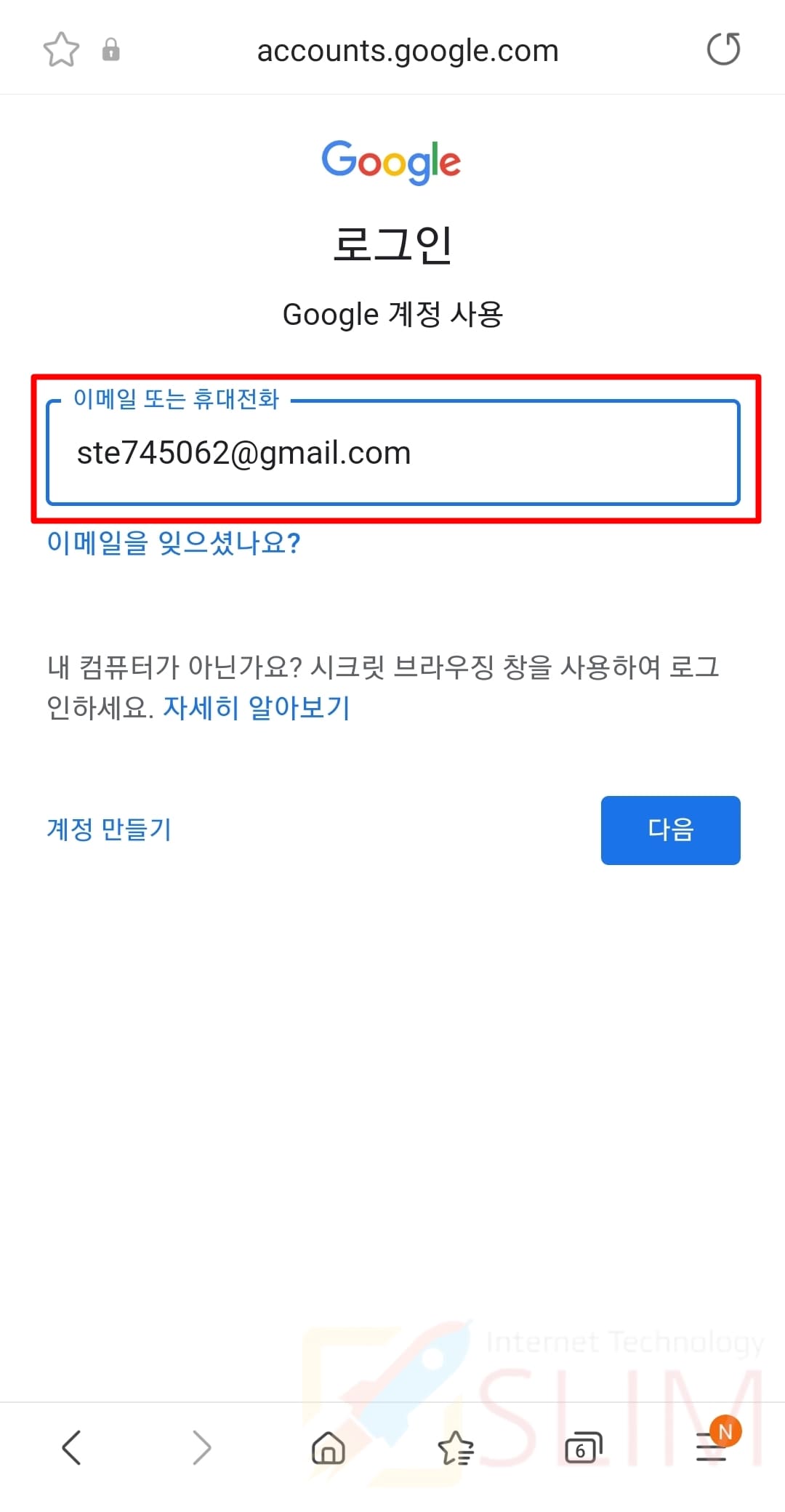 1. 스마트폰에서 구글 사이트를 실행합니다.