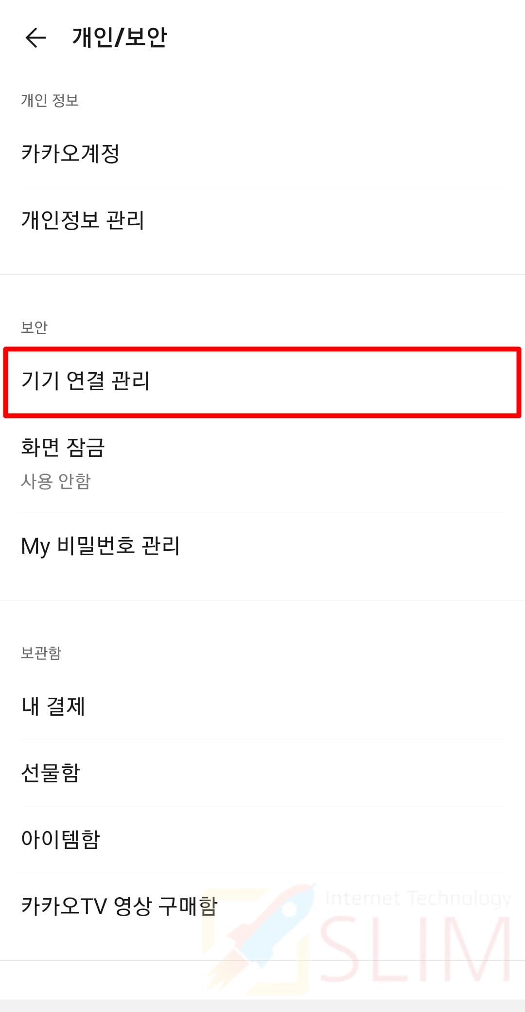 5. 기기 연결 관리를 클릭합니다.