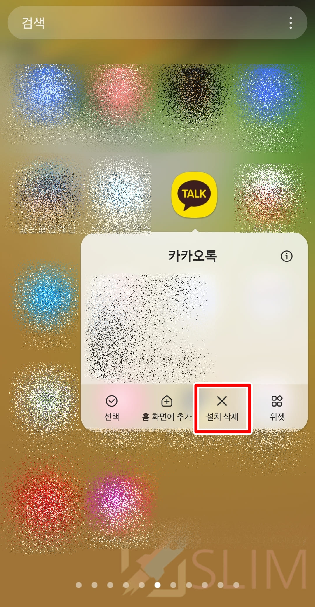 1. 카카오톡 앱을 길게 누릅니다.