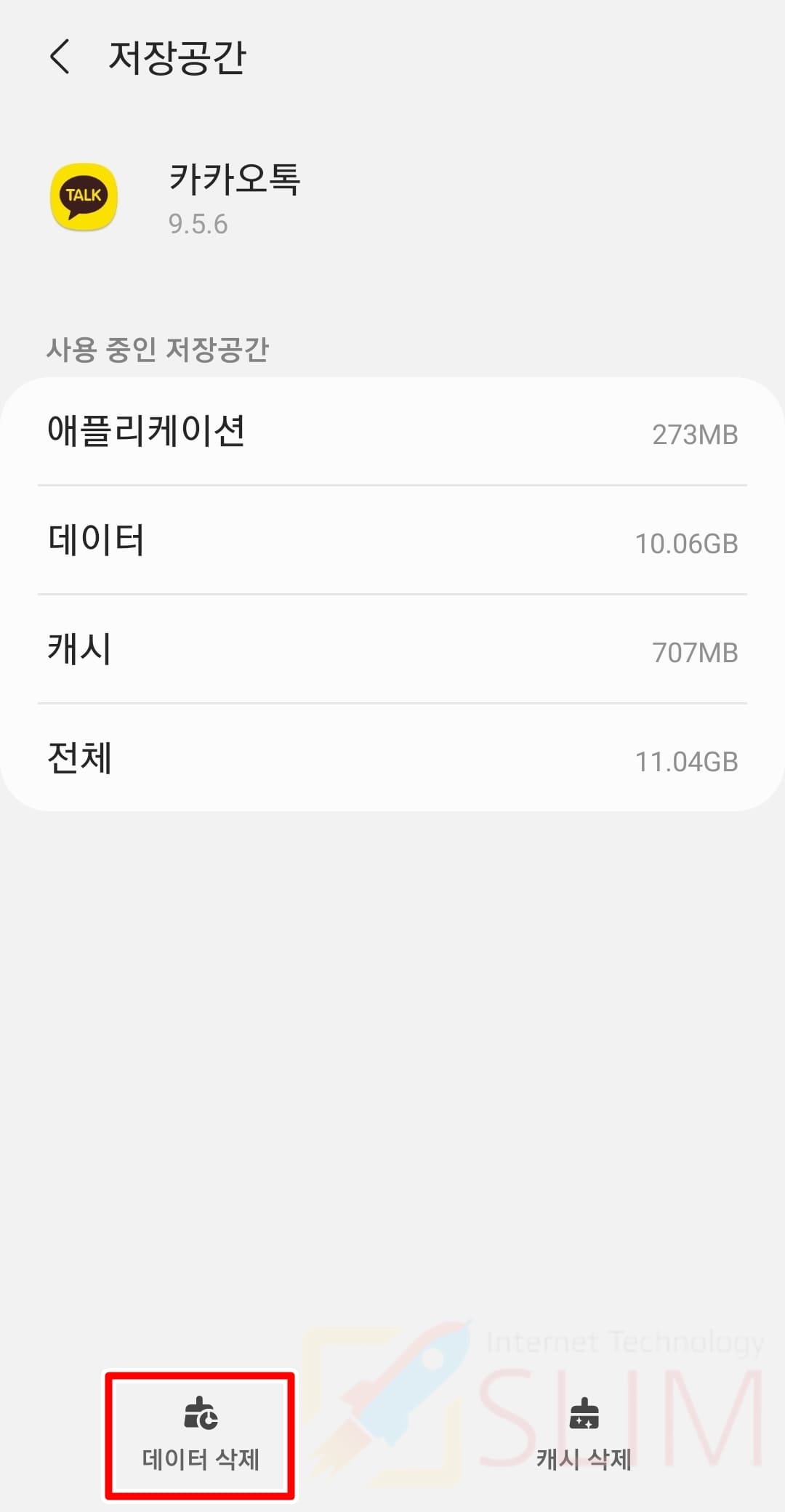 5. 데이터 삭제를 클릭합니다.