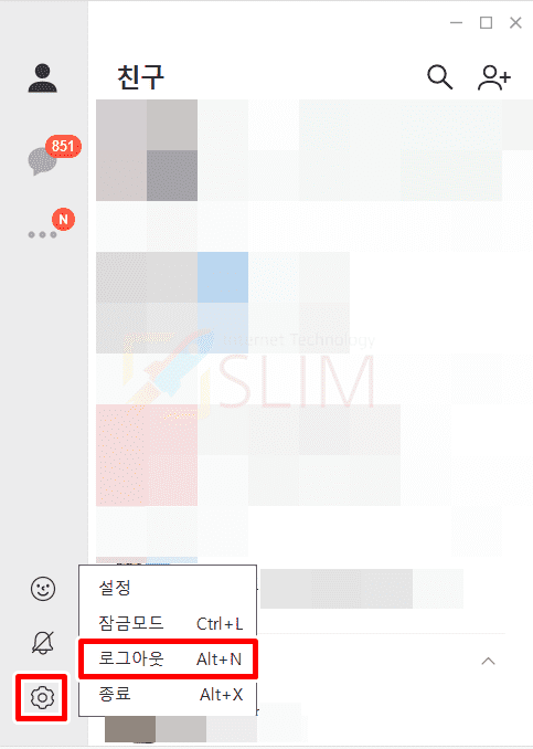 다음은 PC 카톡 프로그램에서 어떻게 로그아웃을 할 수 있는지 알아보겠습니다. 아래는 현재 PC를 이용하고 있다는 가정하에 로그아웃을 할 수 있는 방법입니다.
